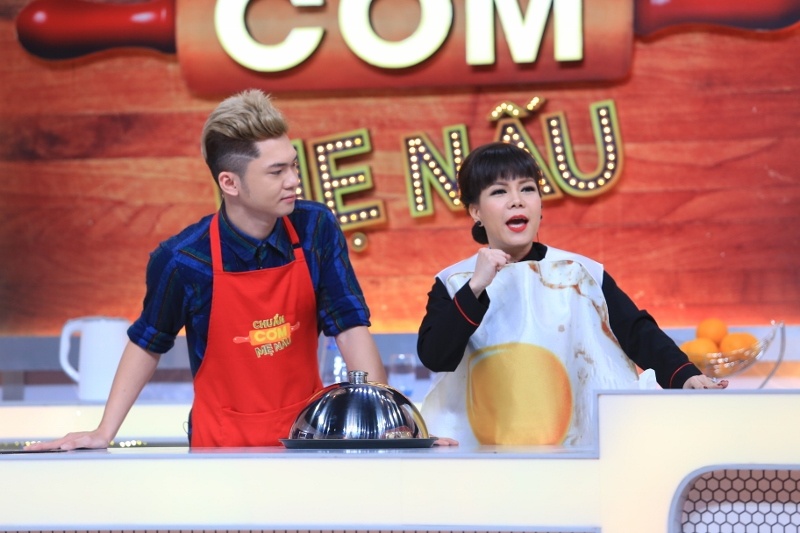 | Trong cuộc tỉ thí ẩm thực tuần này, Việt Hương trở thành “thiên thần hộ mệnh” của Bảo Kun và mẹ Kim Đào. |