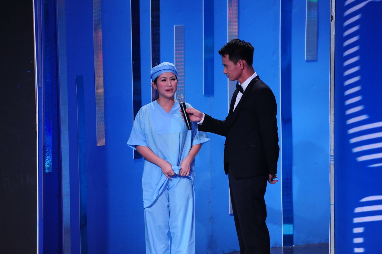 | Kiều Linh xuất hiện tại sân khấu trong bộ đồ bệnh viện. Bản thân người chơi cũng lo lắng không biết mình là y tá, bác sĩ, hộ lý hay làm gì. Vị trưởng phòng cô phải đối diện khi vào cánh cửa là diễn viên hài Trấn Thành. |