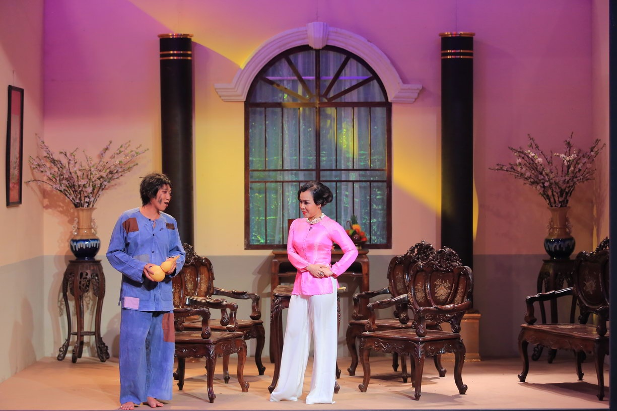 | Khi bước vô cánh cửa, anh phải đối diện với một Việt Hương lả lướt, uốn éo trên sân khấu. Chính điệu bộ của Việt Hương đã khiến Anh Đức phải hỏi ngay: “Dạ cho em hỏi đây có phải lầu xanh không chị?” .Việt Hương khi thấy bạn diễn xuất hiện đã nhập vai, cô gọi tên anh là Phèo. Và Việt Hương tự nhận bản thân là bà Ba - vợ của Bá Kiến - nhân vật nổi đình nổi đám với dáng vẻ lẳng lơ. |