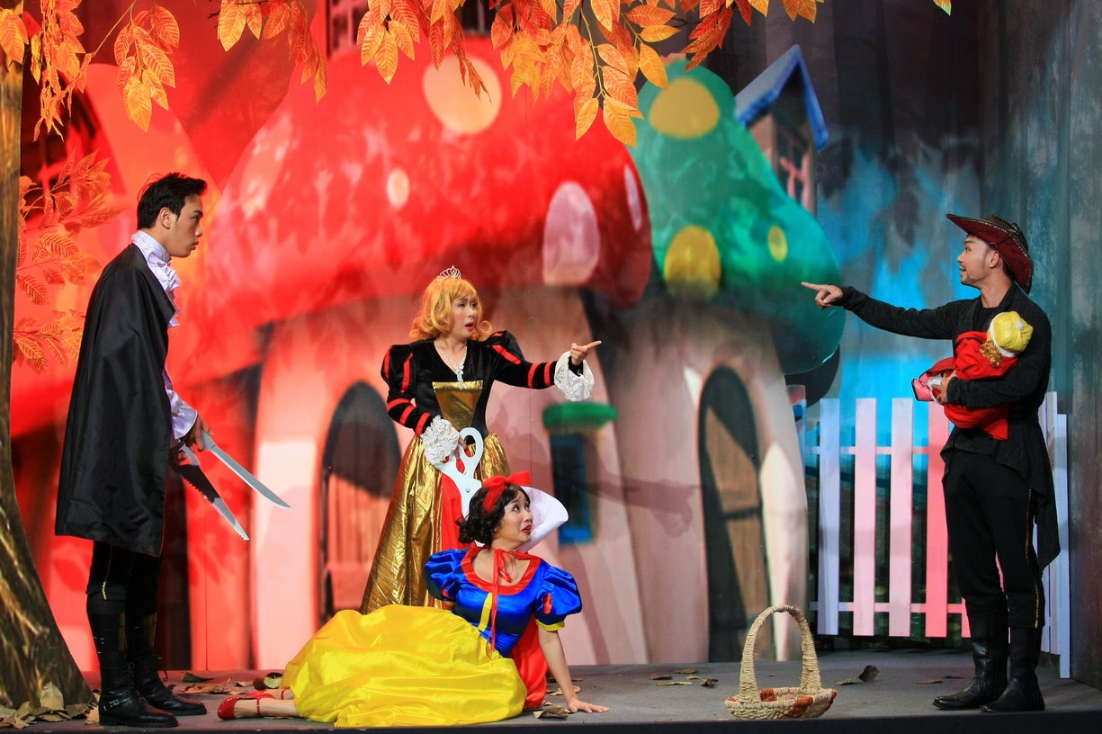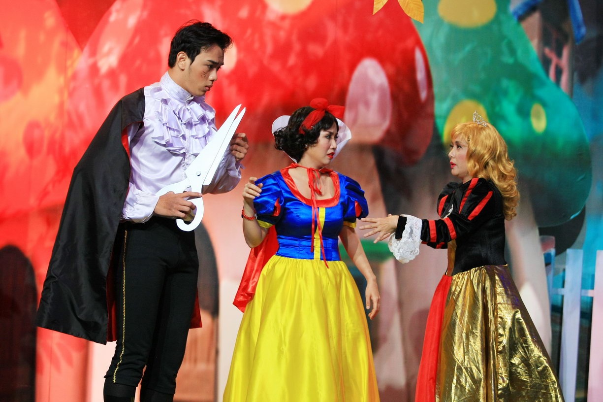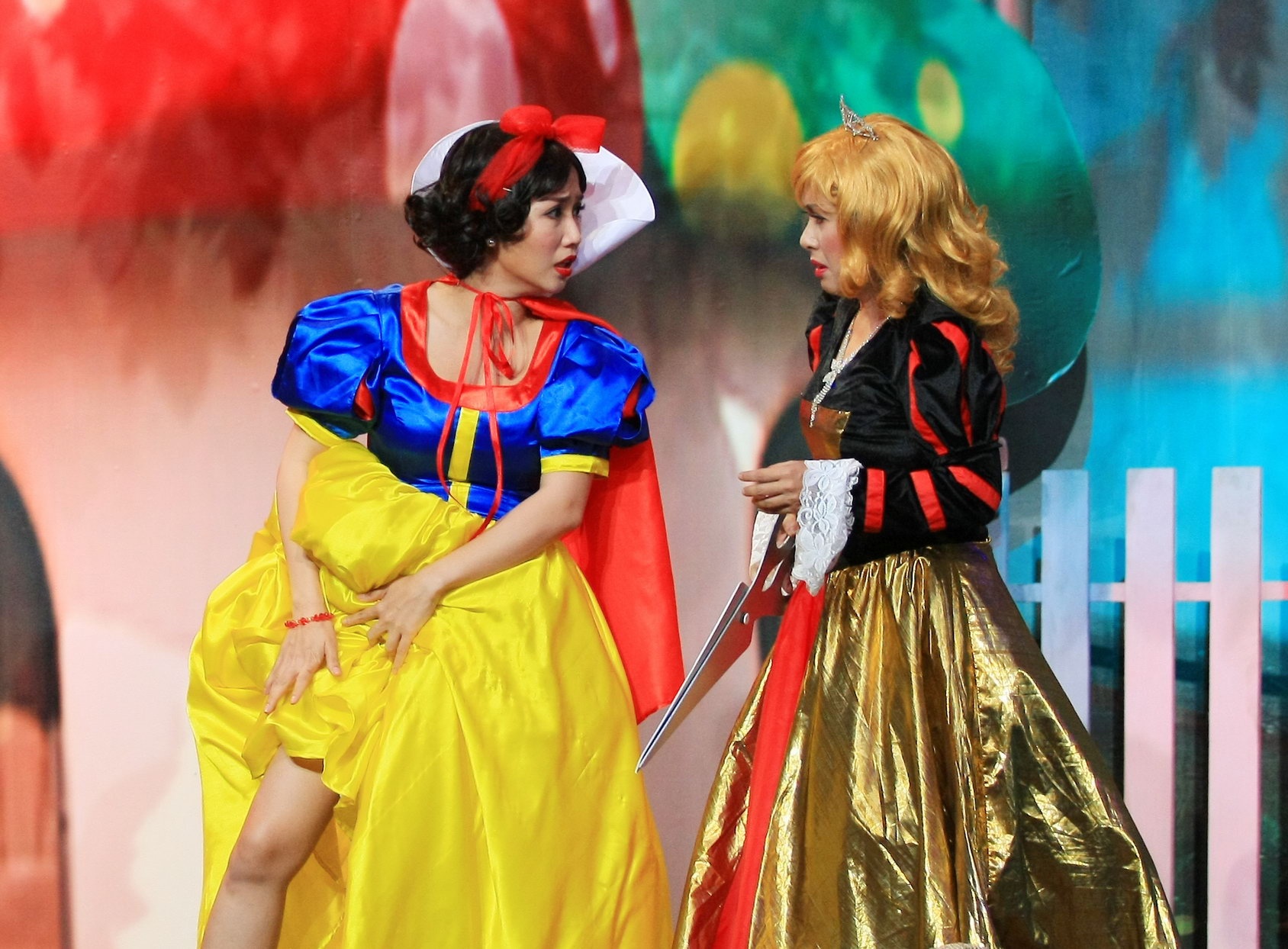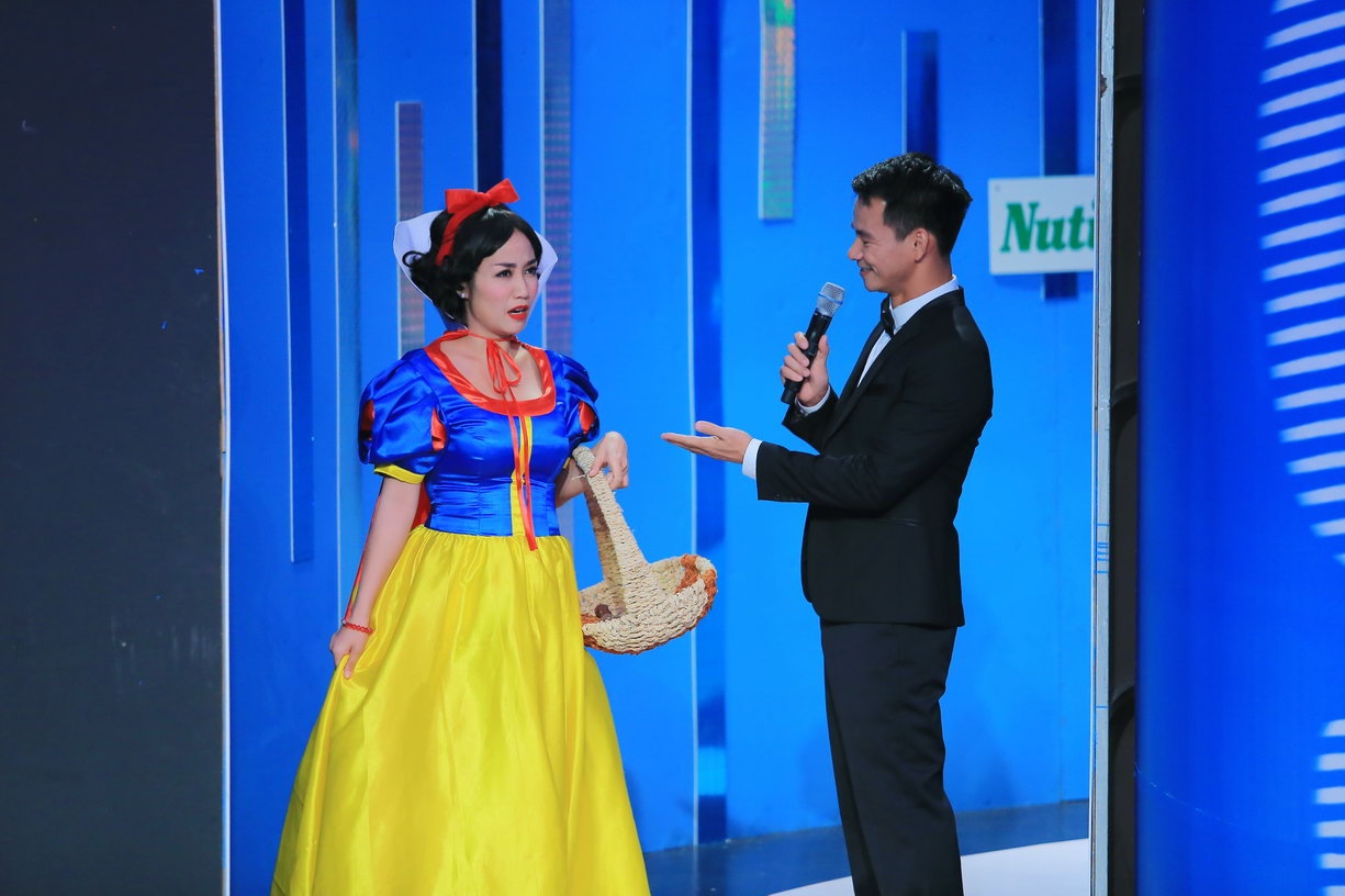 | Ốc Thanh Vân hoá thân thành nàng Bạch Tuyết da trắng, môi đỏ. Bước vào cánh cửa, khách mời cô gặp phải hoàng hậu Thanh Thuỷ xinh đẹp. Tuy nhiên, hoàng hậu không độc ác như trong truyện cổ tích mà rất quái chiêu. |
