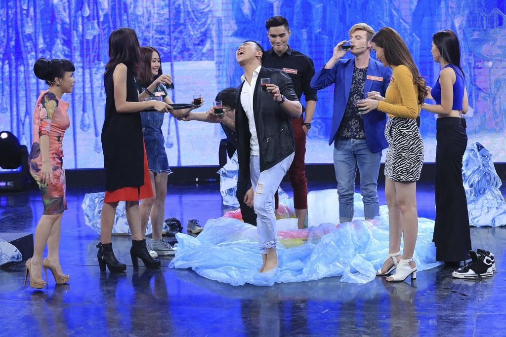 Sau khi kết thúc vòng 3, Việt Hương yêu cầu các quý ông bước vào băng lạnh để thử thách. Sau vài giây đầu tiên, Trấn Thành tự nhận bản thân là "cô hầu bàn" và chấp nhận thua cuộc đầu tiên. |