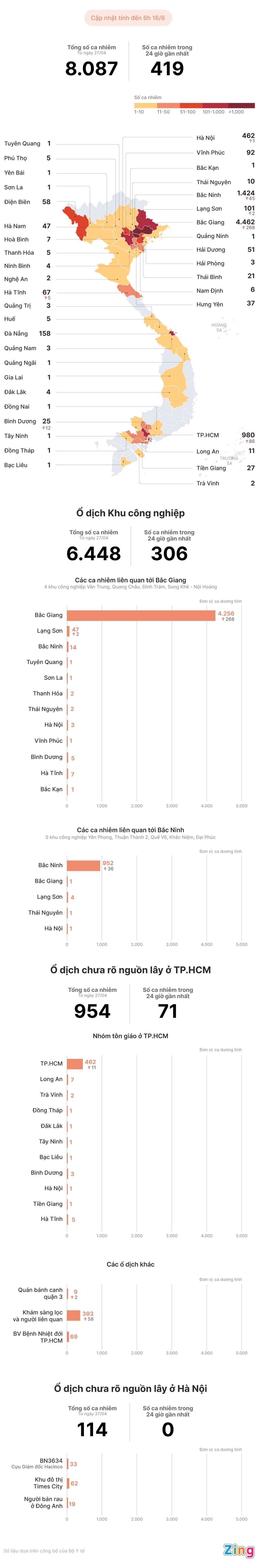 Từ 27/4 đến nay, Việt Nam phát hiện 8.087 ca mắc Covid-19 tại 40 tỉnh, thành phố. Trong 24 giờ qua, số lượng bệnh nhân mới là 419 người.