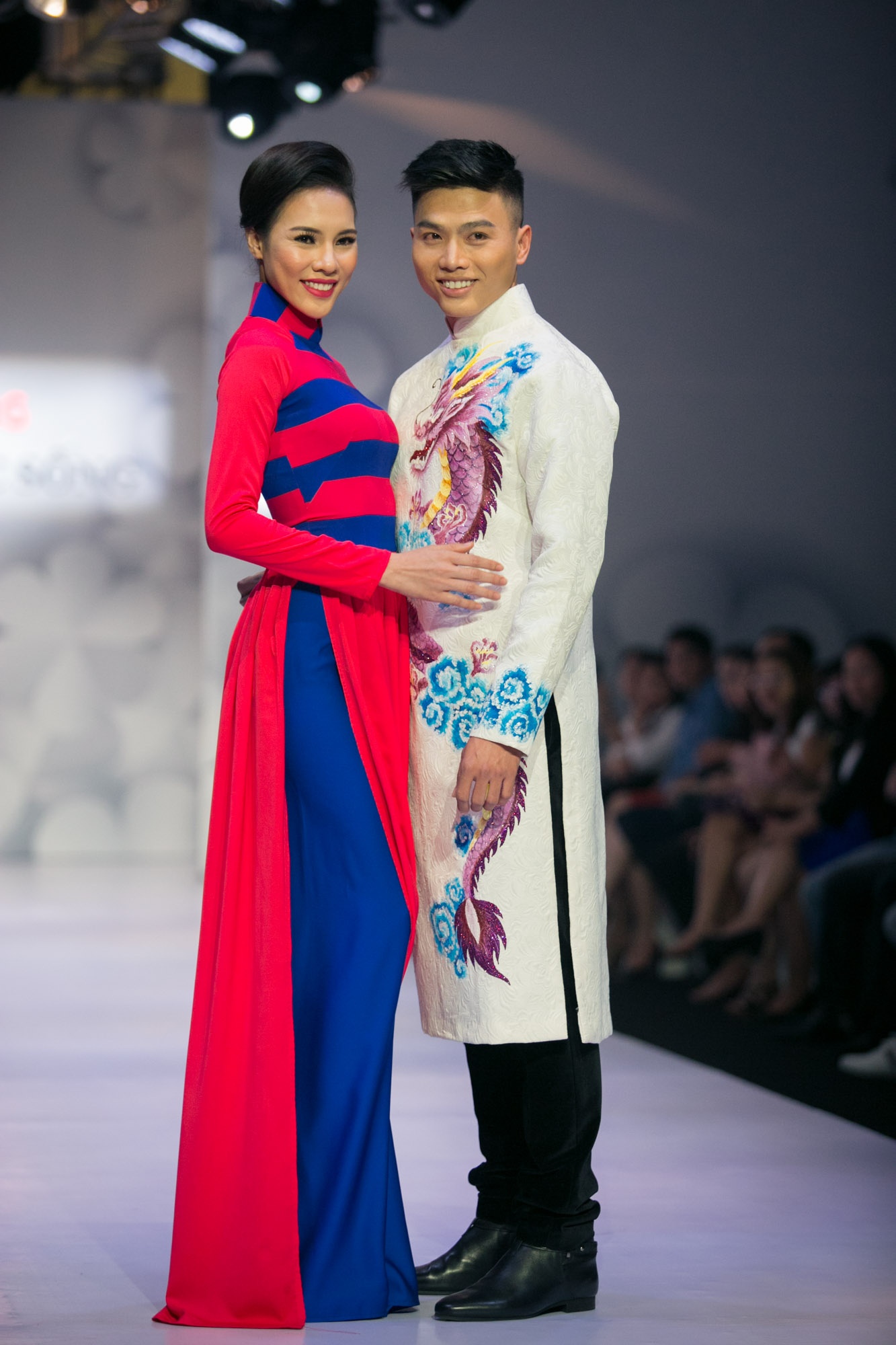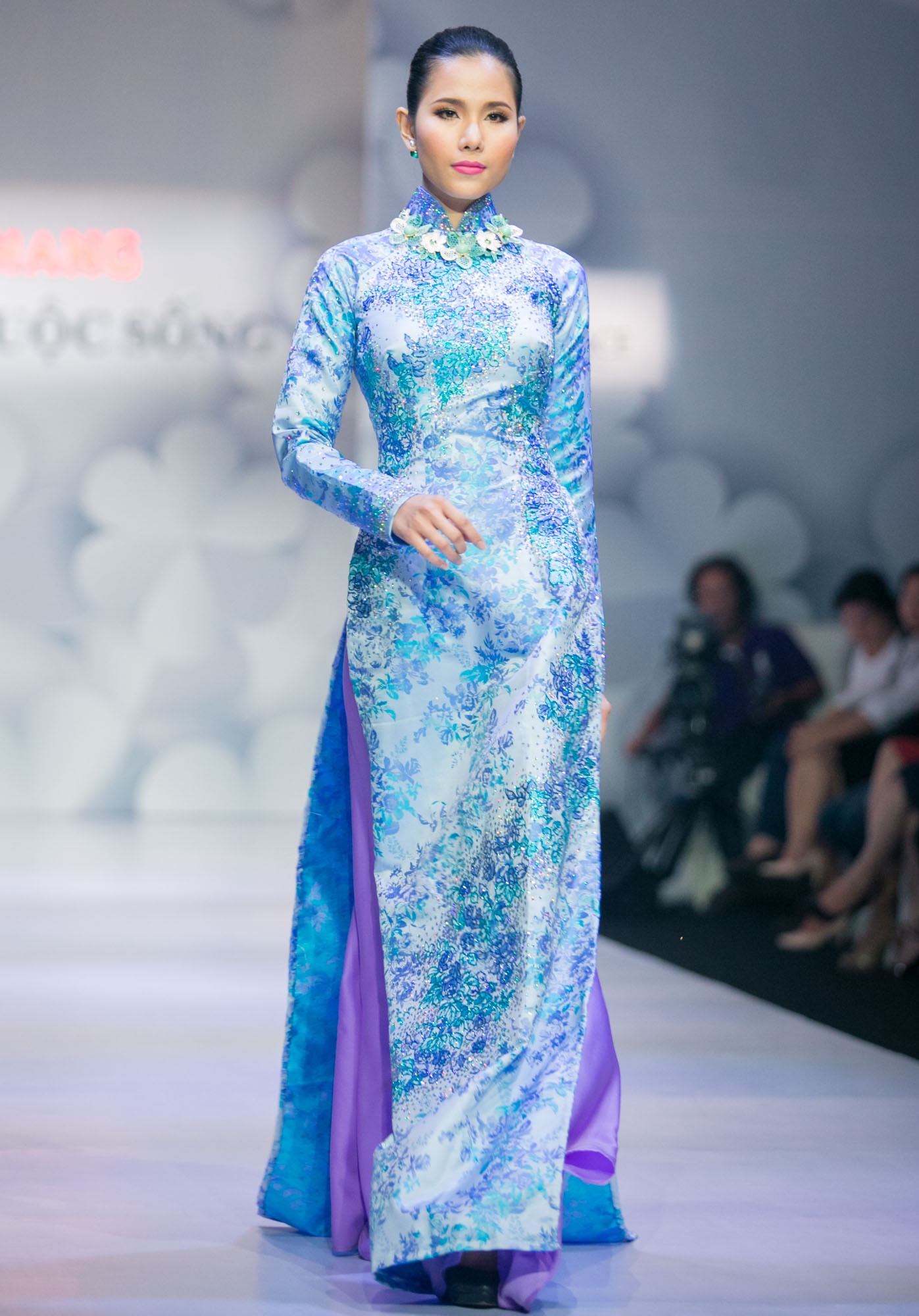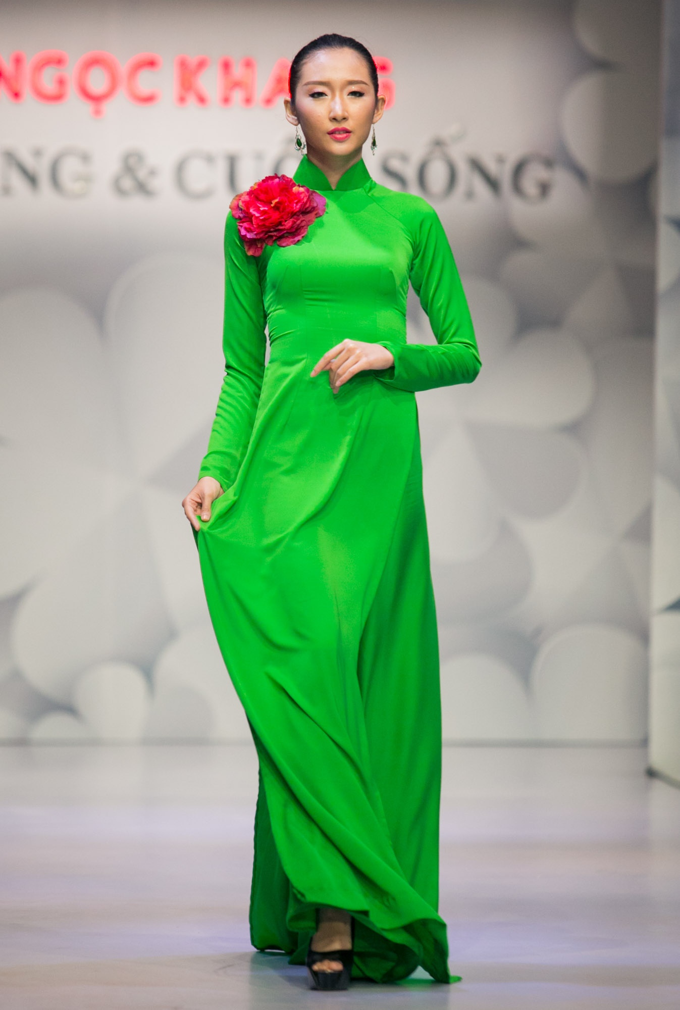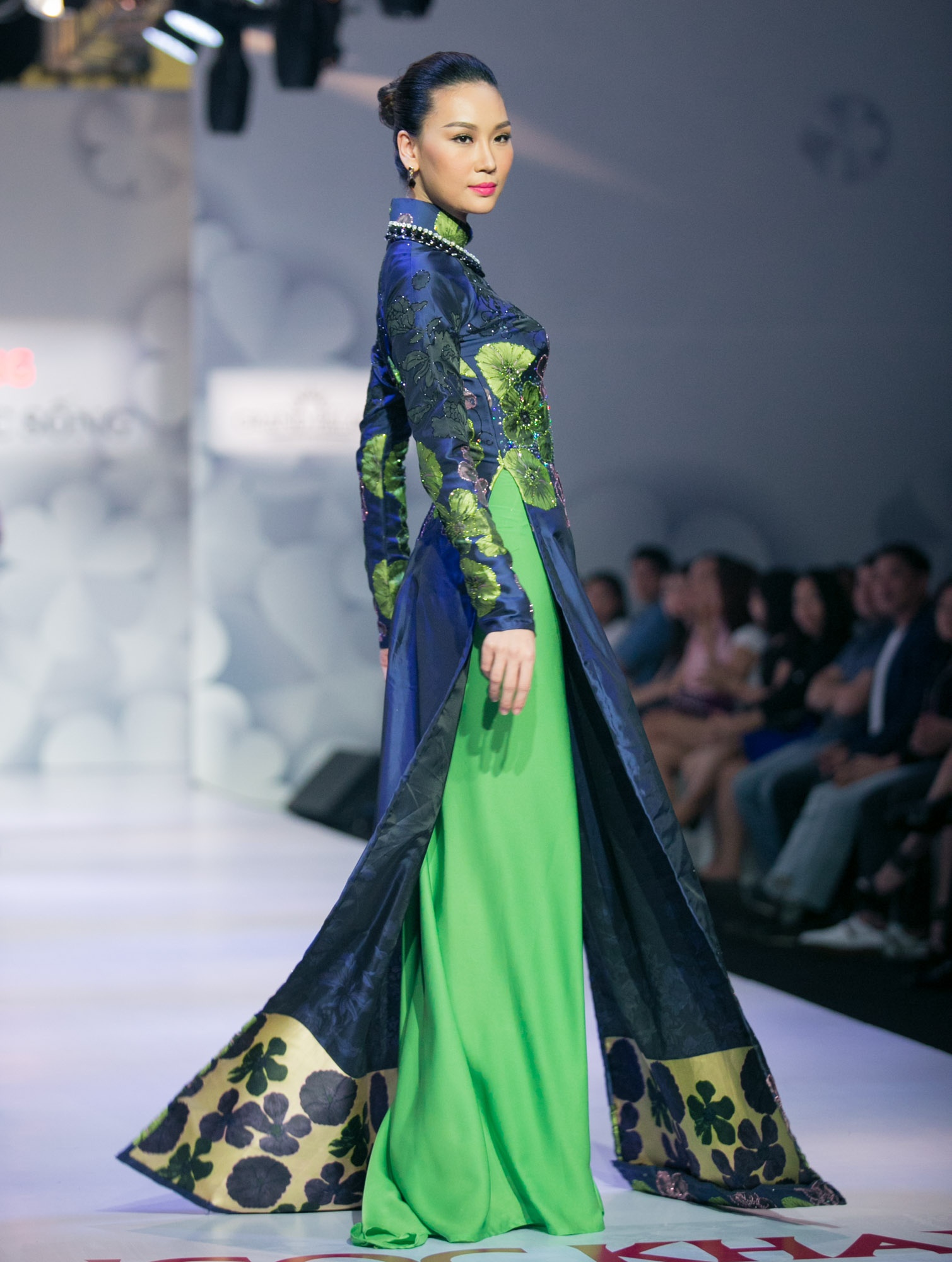 Lần đầu bước lên sàn diễn thời trang, bà mẹ một con cho thấy khả năng trình diễn tự tin, duyên dáng khi diện áo dài truyền thống.