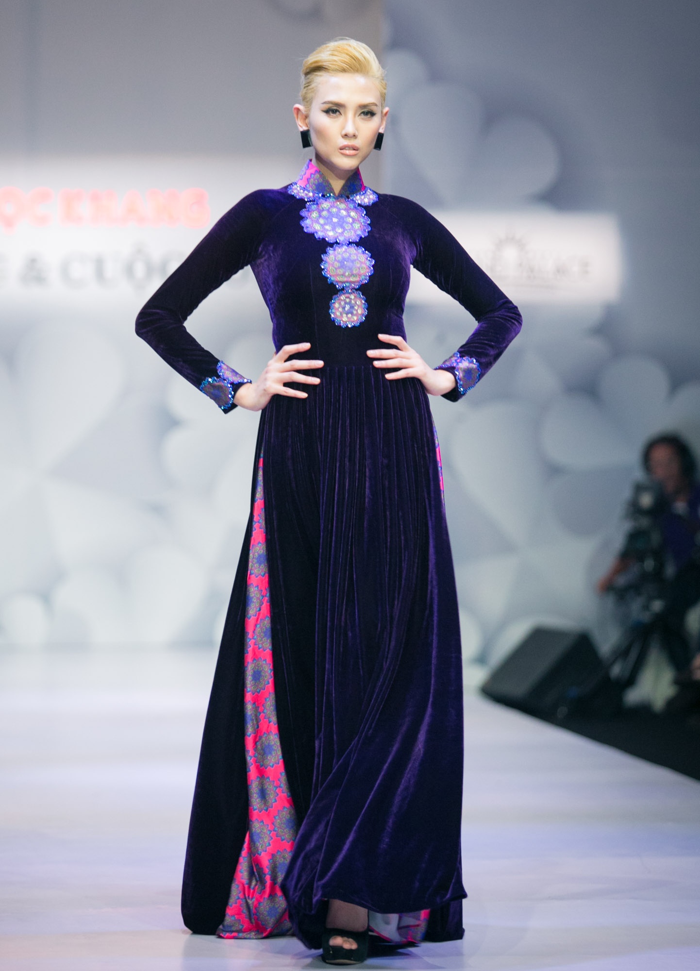 | Sau những ồn ào về đời tư, Võ Hoàng Yến tích cực đi diễn hơn trước. Cô thể hiện mẫu áo dài truyền thống, chất liệu nhung the cổ điển. |