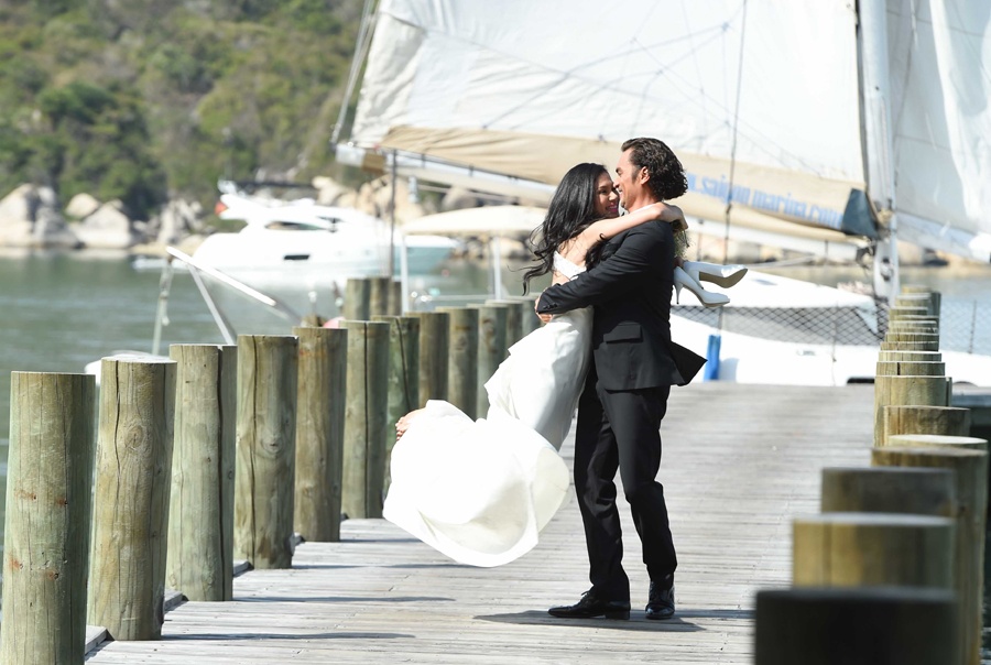 | Đây cũng là địa điểm được nhiều đôi uyên ương chọn chụp ảnh cưới. Chính vì thế, Việt Trinh và Đức Hải xuất hiện trong trang phục cô dâu – chú rể, đã gây hiểu nhầm cho không ít vị khách có mặt tại resort. |