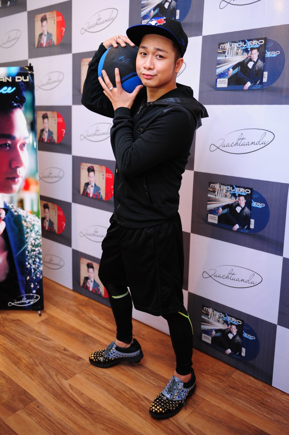 | Chủ nhân album đôi Mr. Bolero - Dance và Còn gì mà nhớ ăn mặc tinh nghịch với áo hoodie phối cùng quần legging. Quách Tuấn Du có mặt rất sớm tại sự kiện để tập luyện màn biểu diễn. |