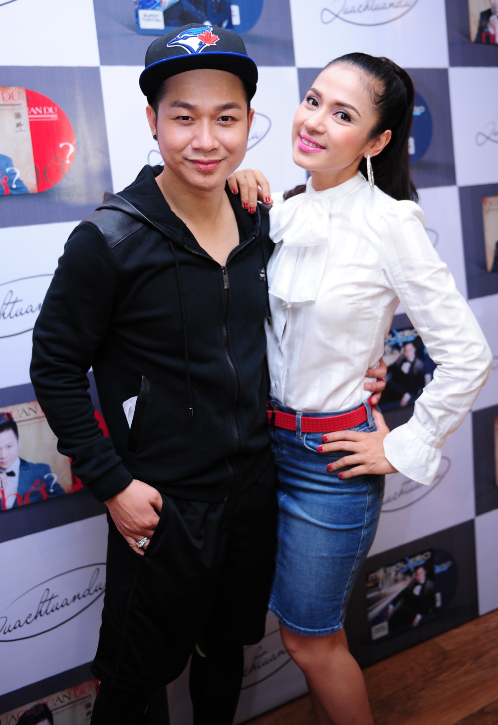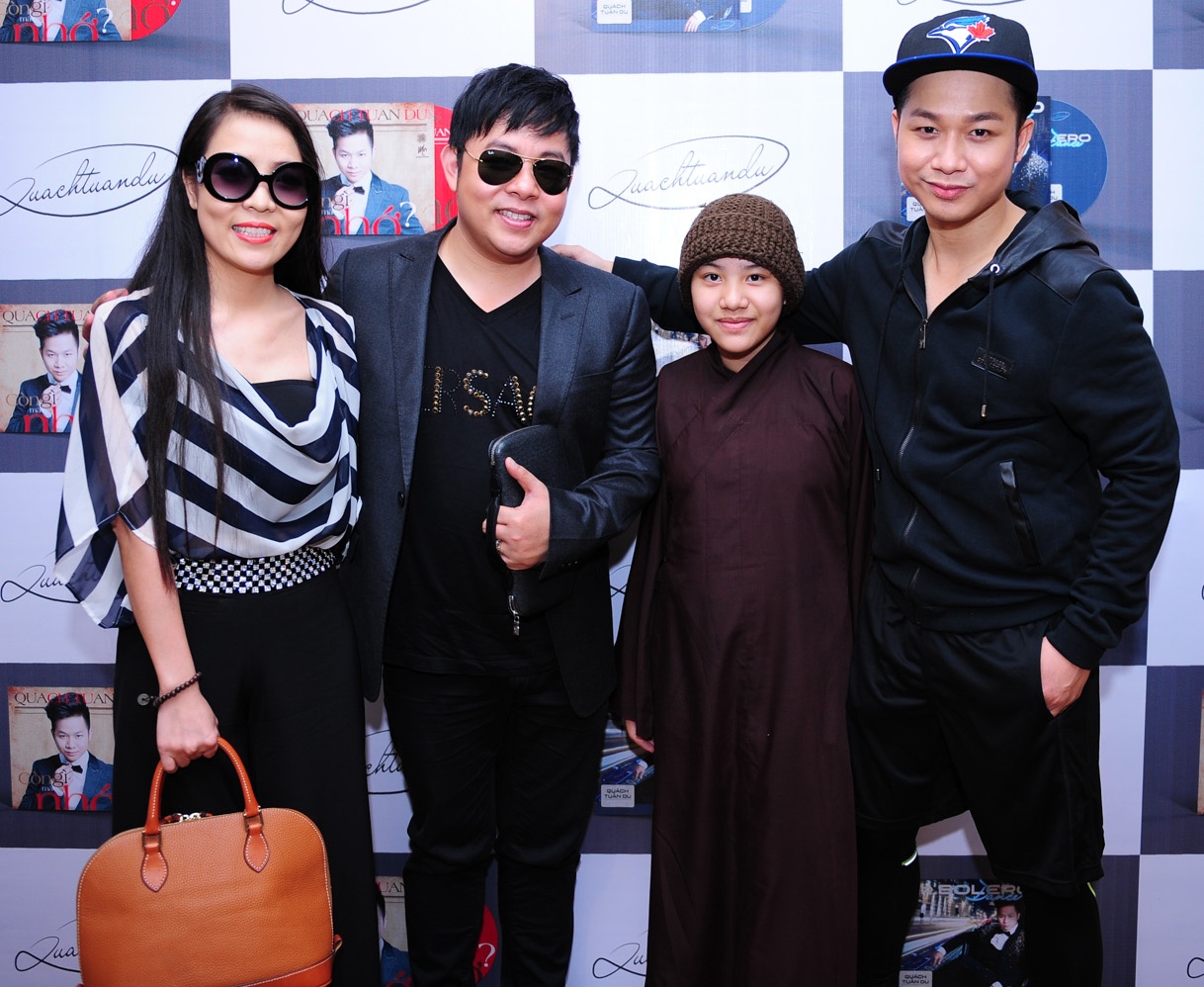 | Nam ca sĩ Quang Lê cũng đến chúc mừng đồng nghiệp thân thiết. Giọng ca Đập vỡ cây đàn ngày càng tăng cân trông thấy. |