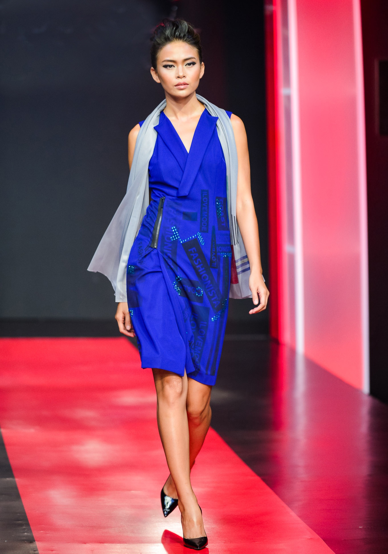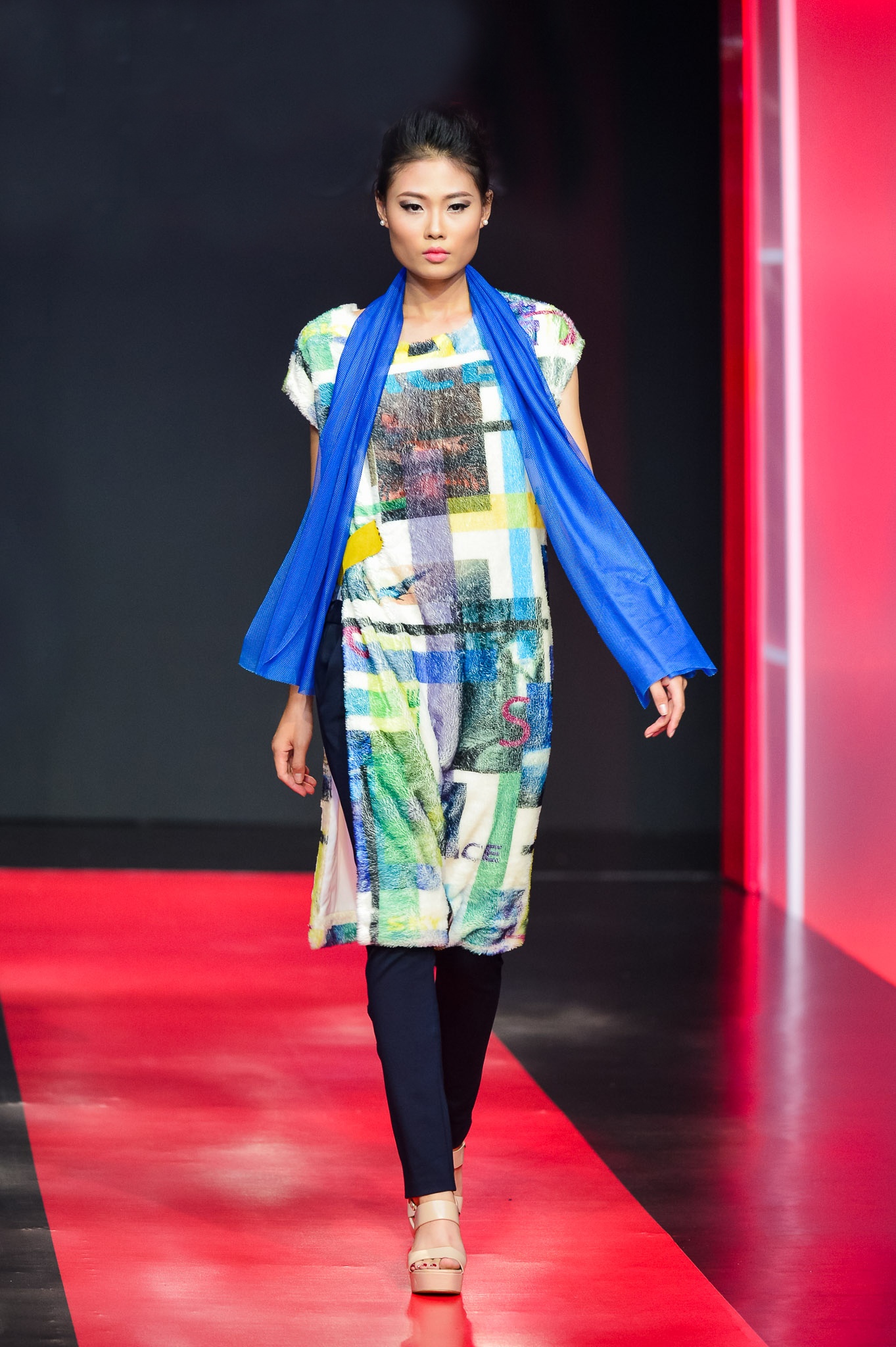 | Mai Giang trình diễn một thiết kế in họa tiết bắt mắt. |