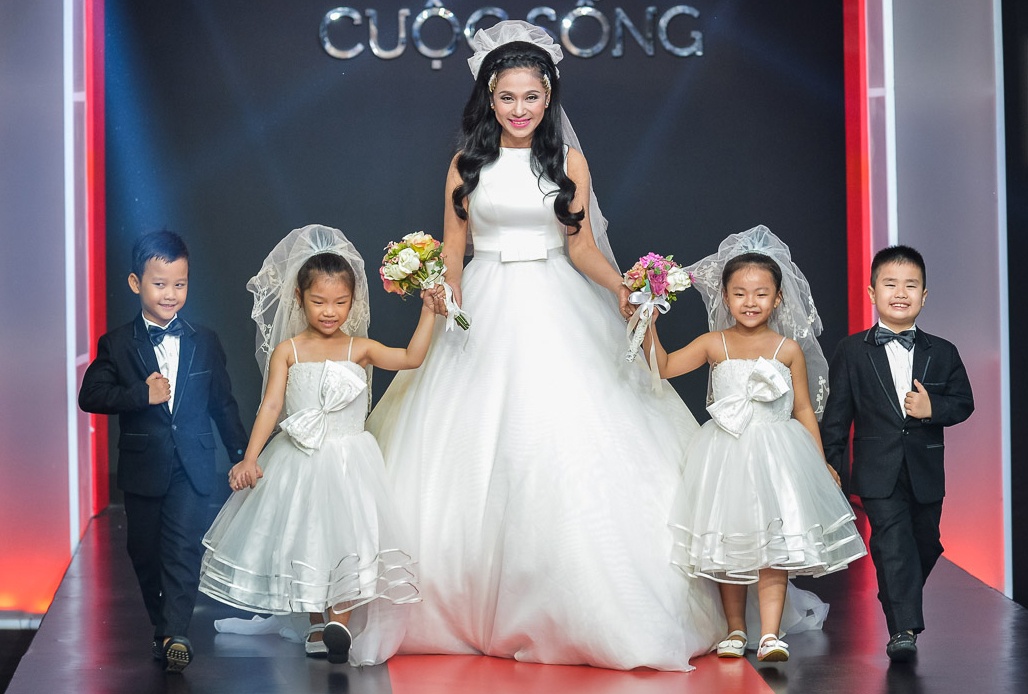 | Nữ diễn viên - đạo diễn tự tin sải bước cùng dàn người mẫu nhí. |