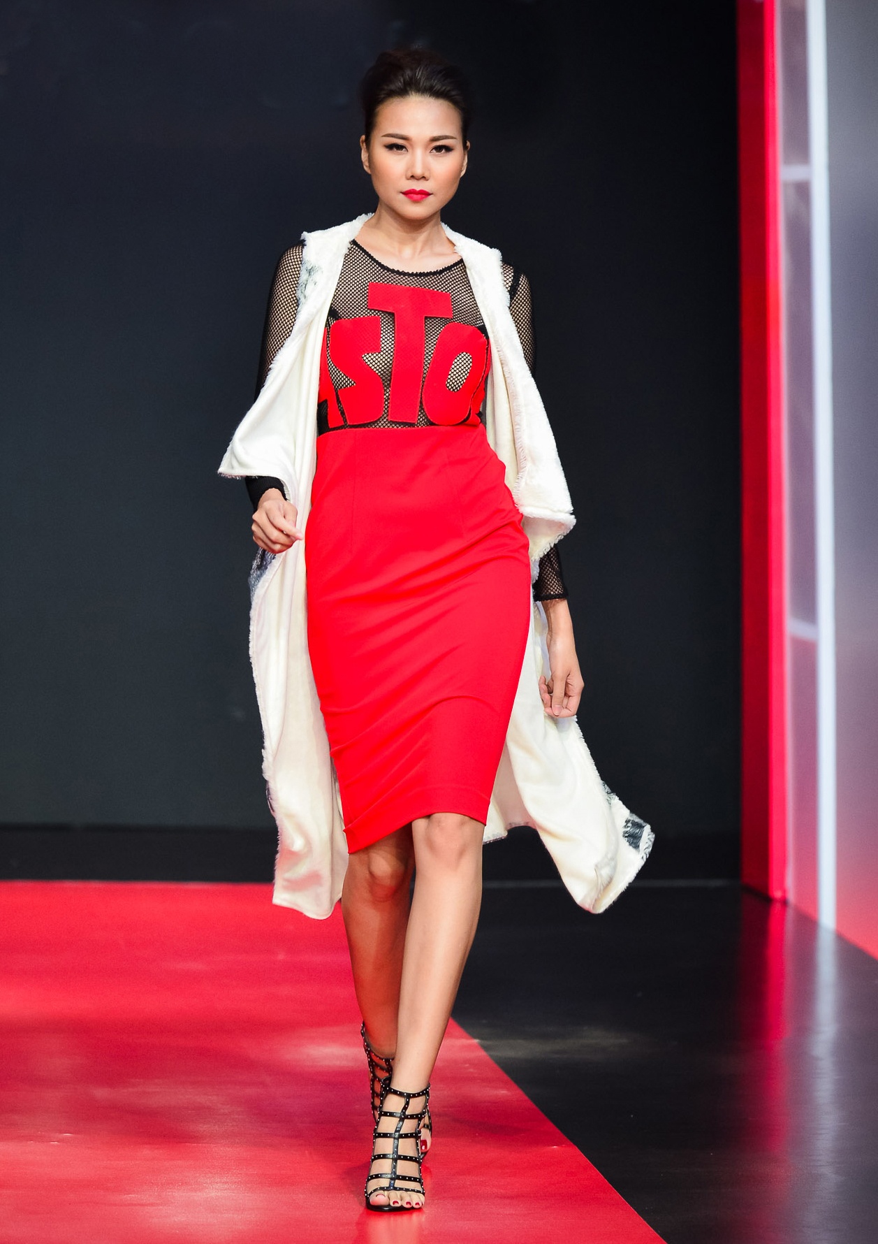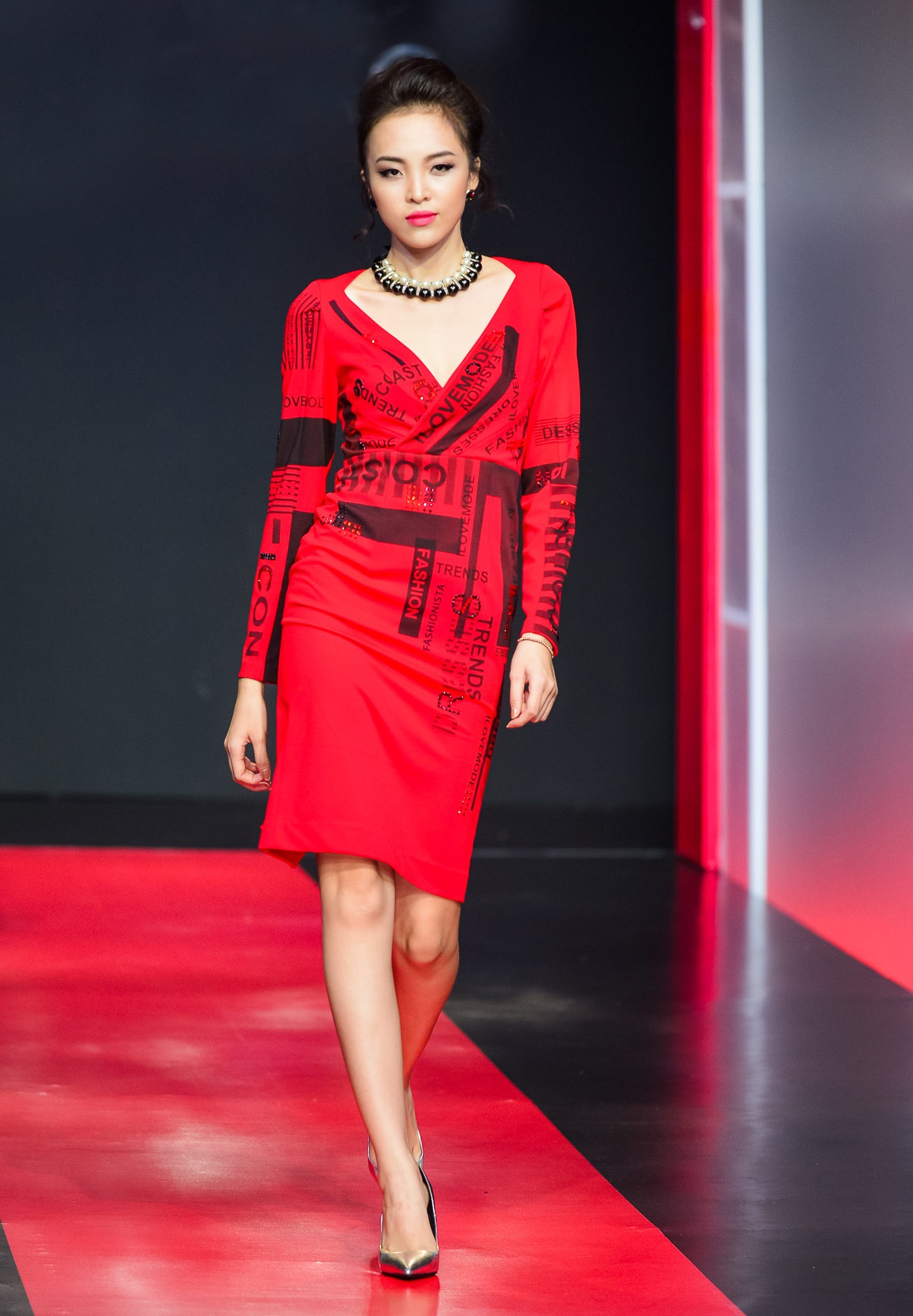 | Chân dài Thanh Hằng cũng góp mặt ở show thời trang số tháng 9. Siêu mẫu diện trang phục hiện đại, nổi bật. |