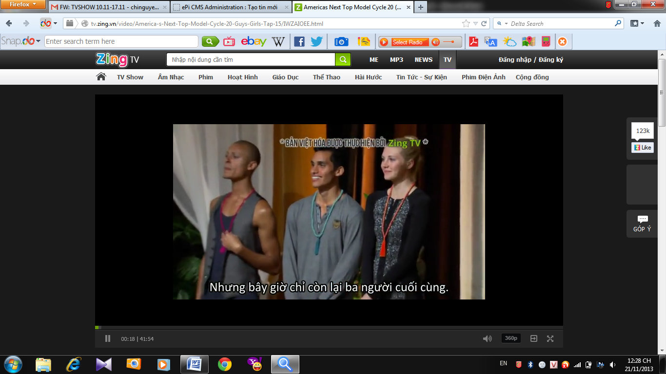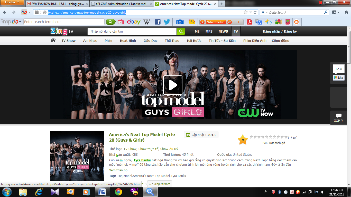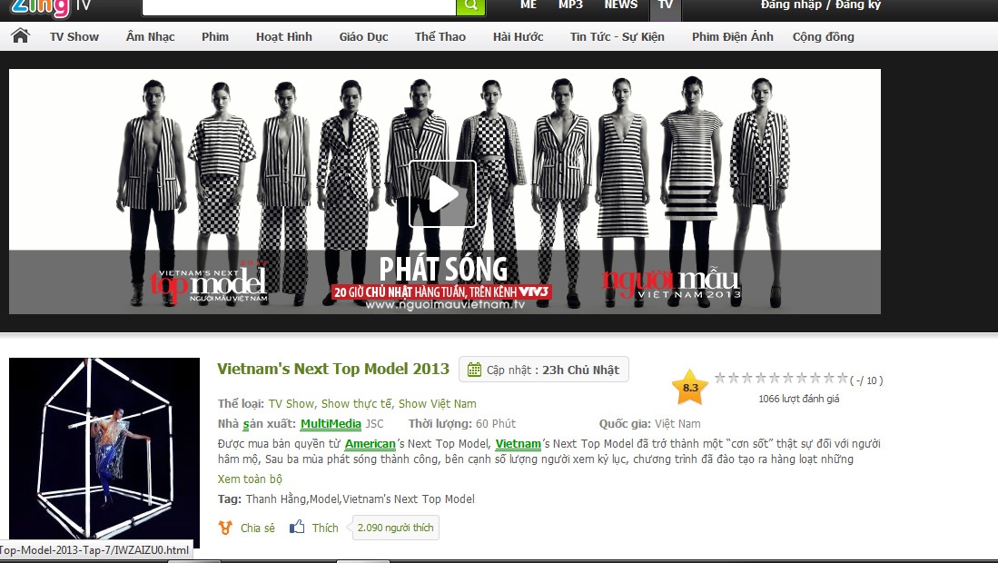Các chương trình TV Show tuần qua hầu như không có điểm nhấn nào đặc sắc nên giảm gần 50% lượt xem so với tuần trước. Vietnam's Next Top Model 2013: Tập 6 chưa có đối thủ mới nên vẫn đứng vững vị trí quán quân trên bảng xếp hạng của Zing TV với 885.782 lượt xem. Tuần này các thí sinh tham gia buổi chụp hình chủ đề Viễn tưởng tương lai nhưng dường như kịch tính của tuần này đã không đủ thu hút khán giả, dẫn đến việc sụt giảm lượt xem khá nhiều.