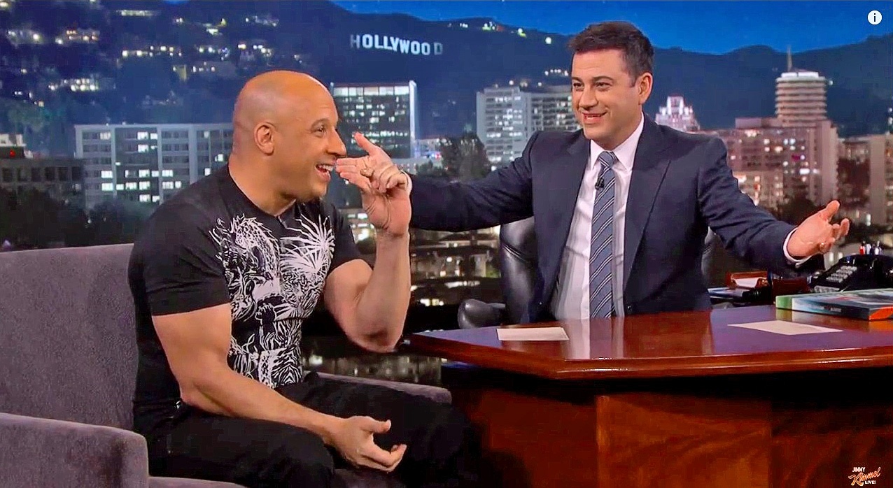 | Vin Diesel hào hứng chia sẻ về phần 8 của Fast & Furious với MC Jimmy Kimmel. |