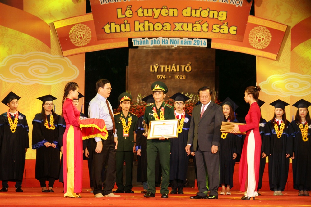 Tối 24/8, Thành ủy, Hội đồng nhân dân, Ủy ban nhân dân thành phố Hà Nội tổ chức lễ tuyên dương thủ khoa xuất sắc tốt nghiệp các trường đại học, học viện trên địa bàn thành phố năm 2014 tại tượng đài Lý Thái Tổ.