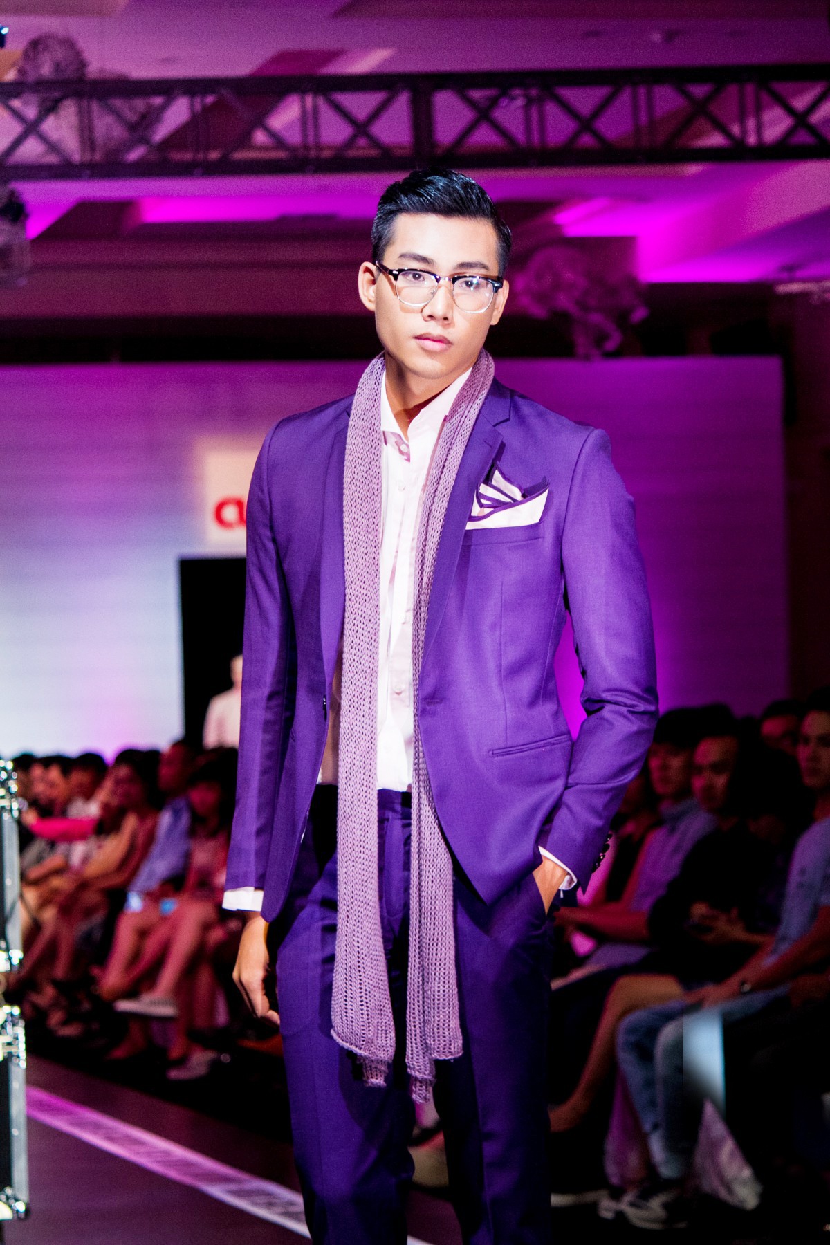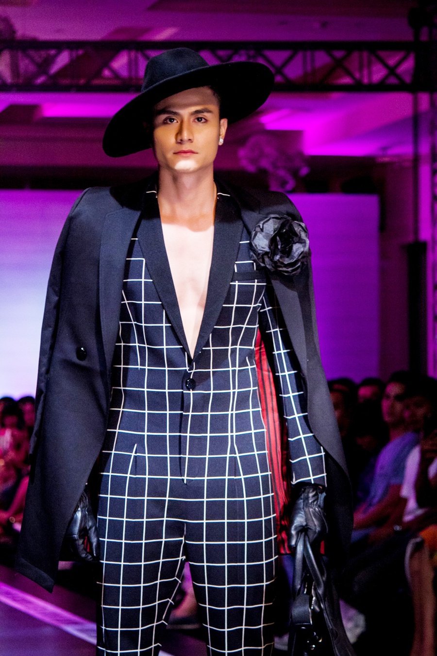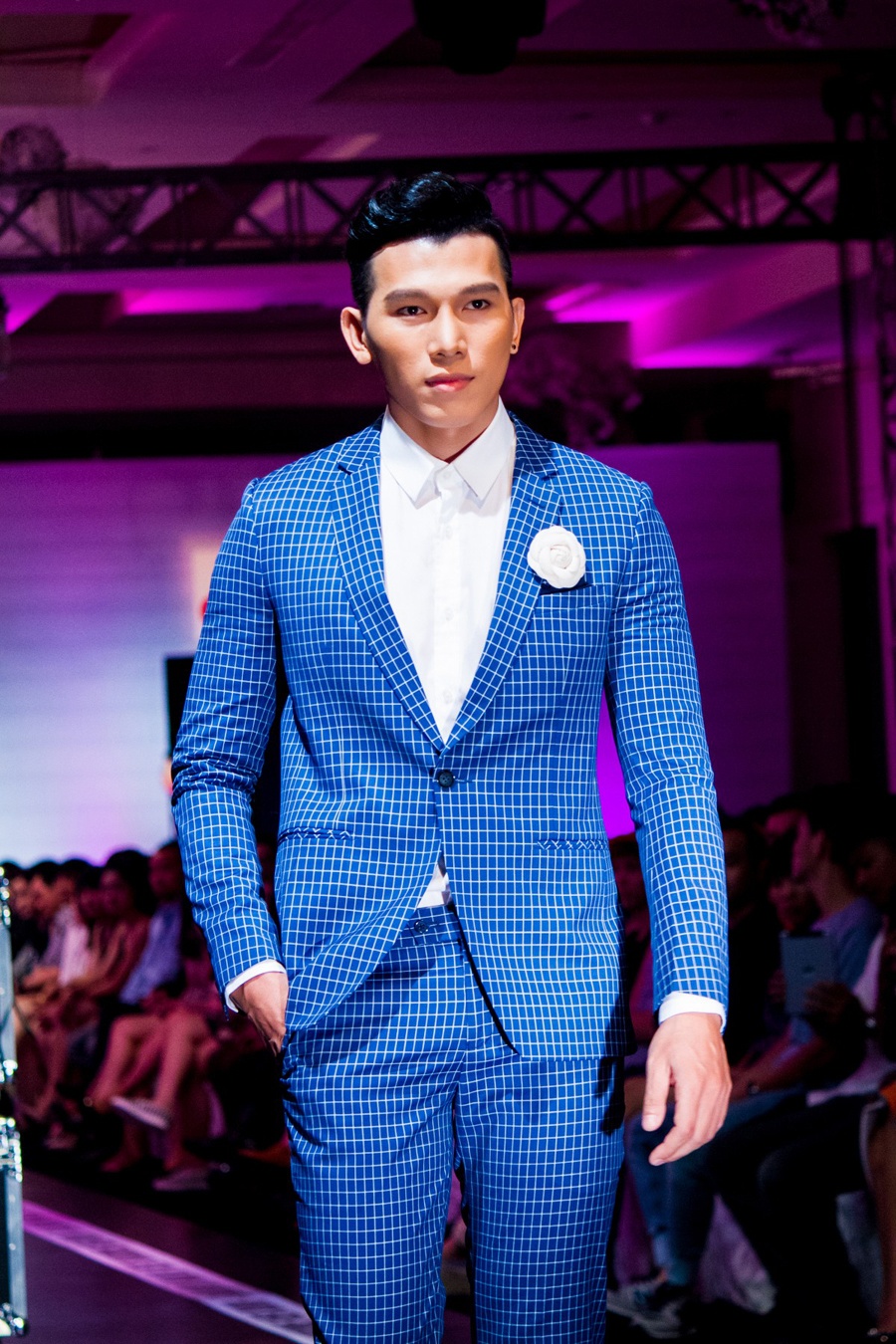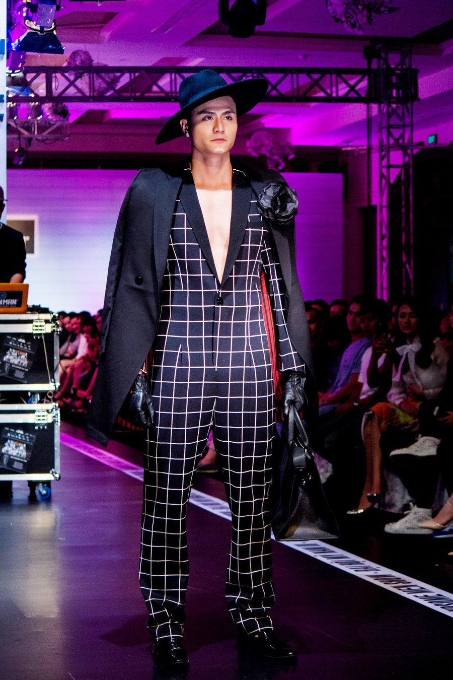 | Trên sàn diễn, siêu mẫu thu hút với phong cách trình diễn tự tin, lạnh lùng. Thiết kế phát huy lợi thế thể hình chuẩn và gương mặt ăn ảnh của bạn trai tin đồn Hoàng Thùy Linh. |
