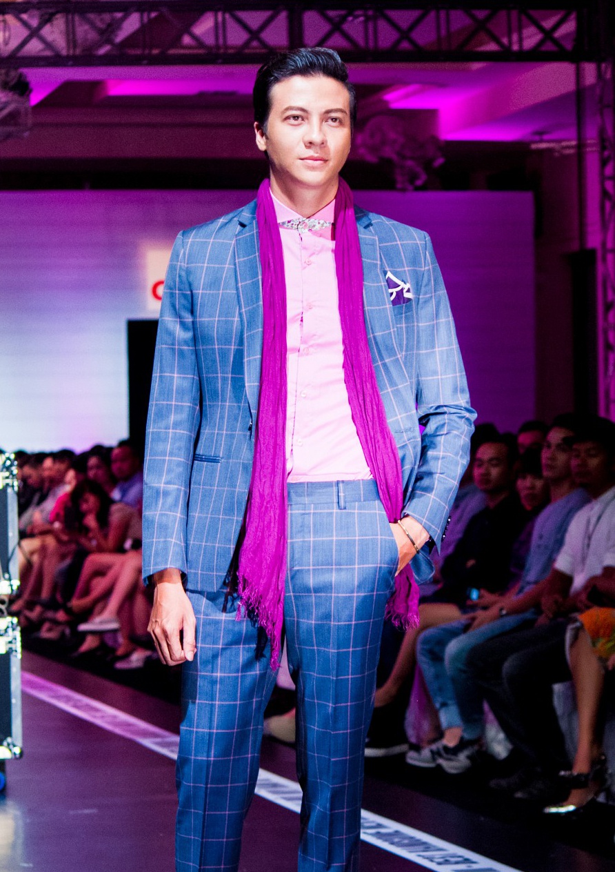 | Người mẫu - diễn viên Hoàng Anh lịch lãm trong bộ vest họa tiết ô kẻ hiện đại. |