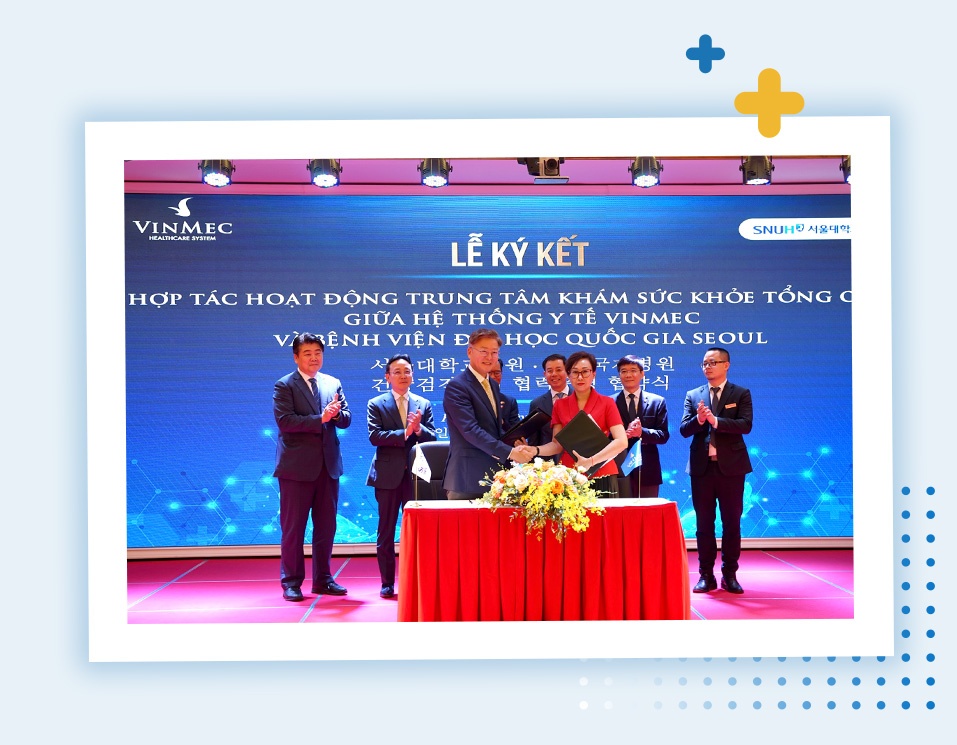 Ngoài ra, sự hợp tác với Bệnh viện Đại học Quốc gia Seoul (Hàn Quốc) giúp hệ thống Vinmec nâng tầm các hoạt động khám sức khỏe tổng quát thông thường thành mô hình đánh giá sức khỏe toàn diện và chuyên sâu. Điều này giúp thúc đẩy sàng lọc sớm nguy cơ gây ung thư, tim mạch, tiểu đường, đột quỵ, bệnh người cao tuổi... hướng tới mục tiêu lớn hơn là các chương trình quản lý sức khỏe được cá thể hóa cho từng khách hàng.