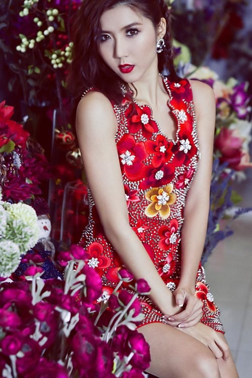 Với chiều cao chuẩn, vóc dáng cân đối, bà mẹ một con được khen ngợi là phù hợp với bộ đầm thanh lịch hơn nữ VJ nóng bỏng.