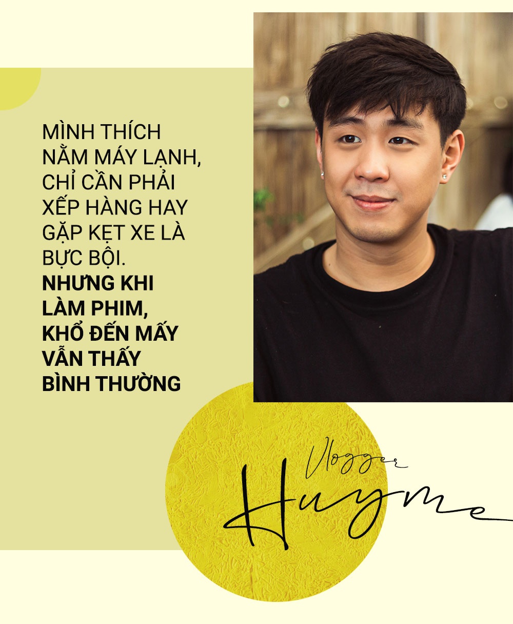 Mình là người thích nằm máy lạnh, làm vlog, edit clip. Mình xếp hàng hay gặp kẹt xe là dễ bực bội rồi nhưng lạ một cái, khi làm phim, khổ đến mấy vẫn thấy bình thường.