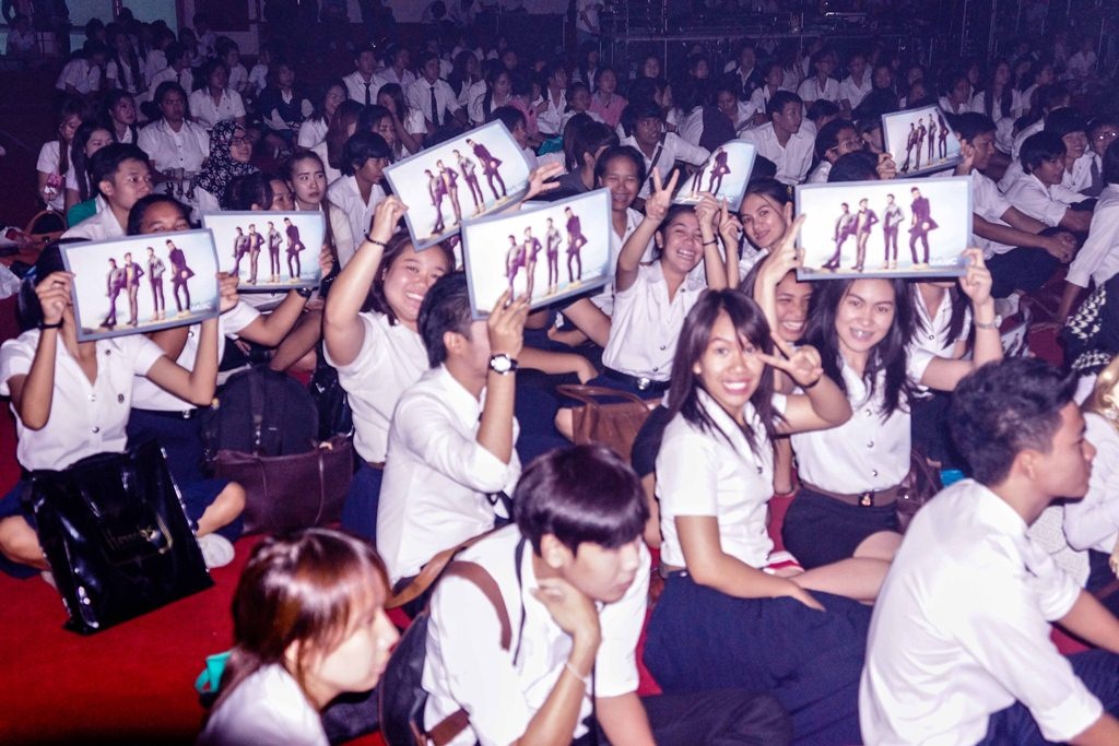| Đến Thái Lan, V.Music nhận được sự đón tiếp khá chu đáo, địa điểm biểu diễn là nhà thi đấu và cũng là hội trường lớn nhất của trường với sức chứa hơn 2000 khán giả. |
