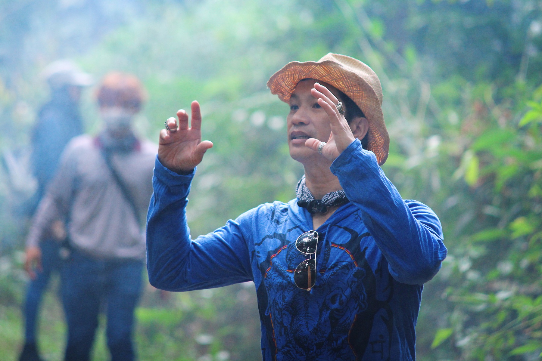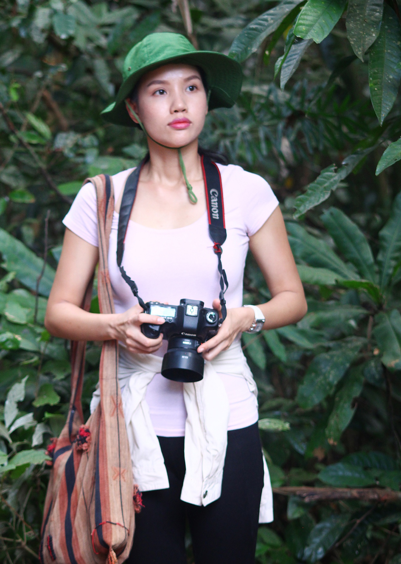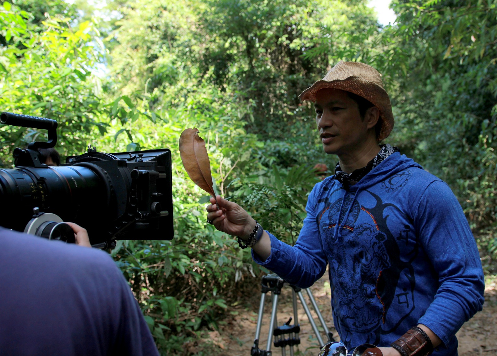 Ở vai trò của nhà sản xuất, BeBe Phạm không ngại khổ, sẵn sàng đồng hành cùng đoàn làm phim trong các bối cảnh trải dài từ miền Trung đến Nam Bộ. Không chỉ vậy, người đẹp còn đảm nhận vai trò phó nháy, ghi lại những khoảnh khắc gian khổ của đoàn phim. Bà mẹ hai con cho biết, trước đây khi làm việc với ê-kíp nước ngoài, cô học "lỏm" kỹ thuật chụp ảnh nên giúp chồng kể lại hành trình đóng phim qua những bức hình. |