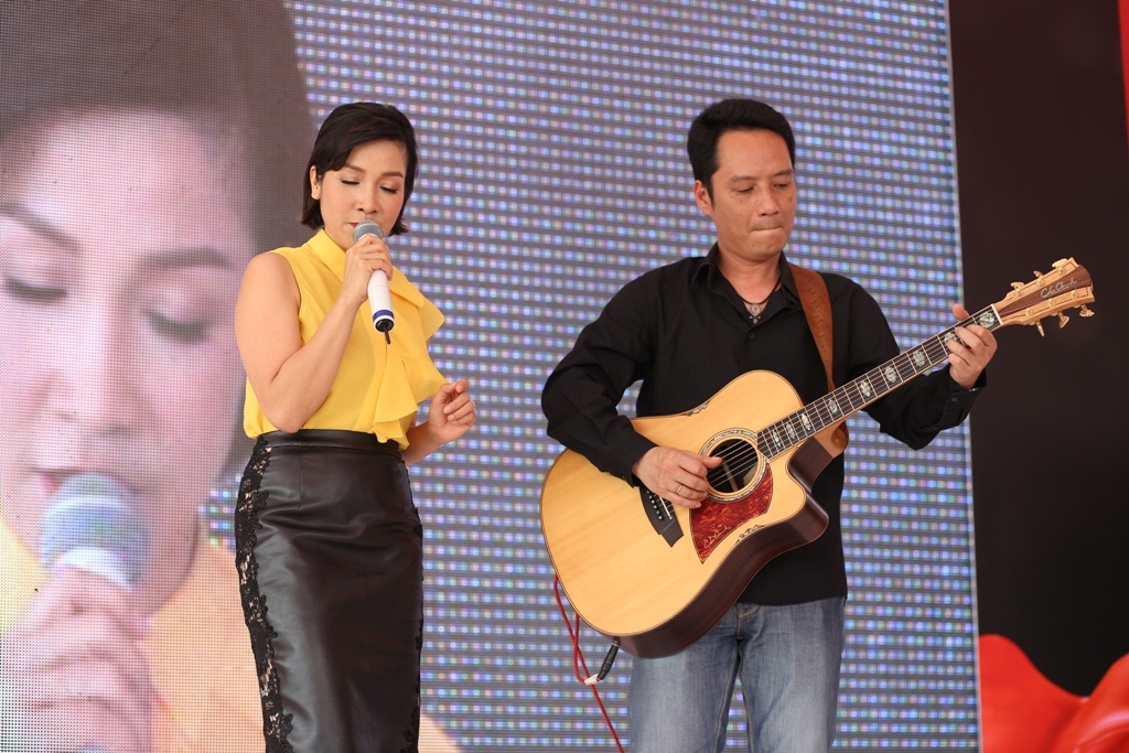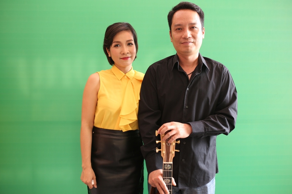| Cặp vợ chồng nhạc sĩ - ca sĩ đình đám nhất miền Bắc ăn mặc ton sur ton. |