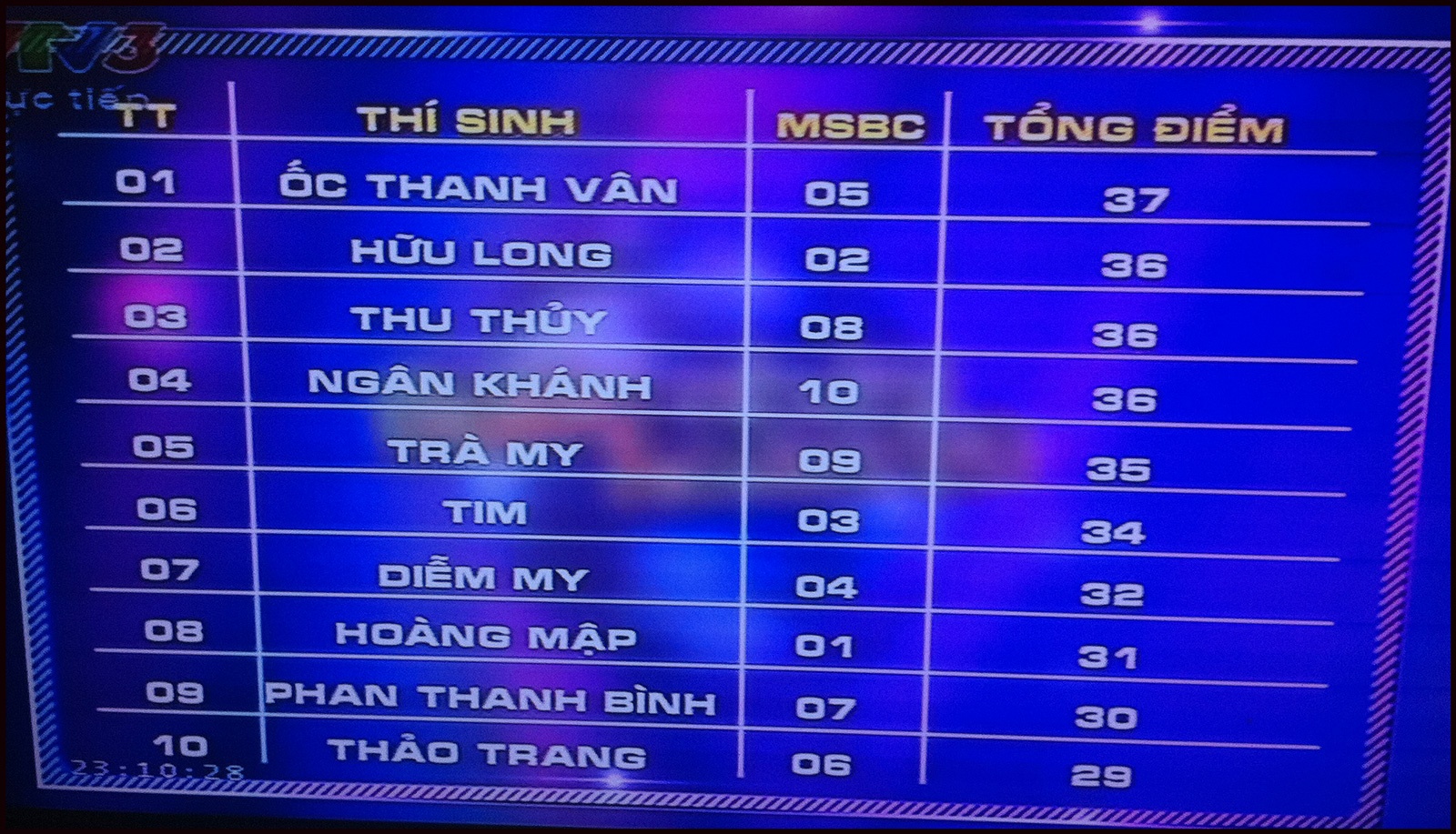 | Điểm số của 10 cặp thi sau đêm mở màn. |
