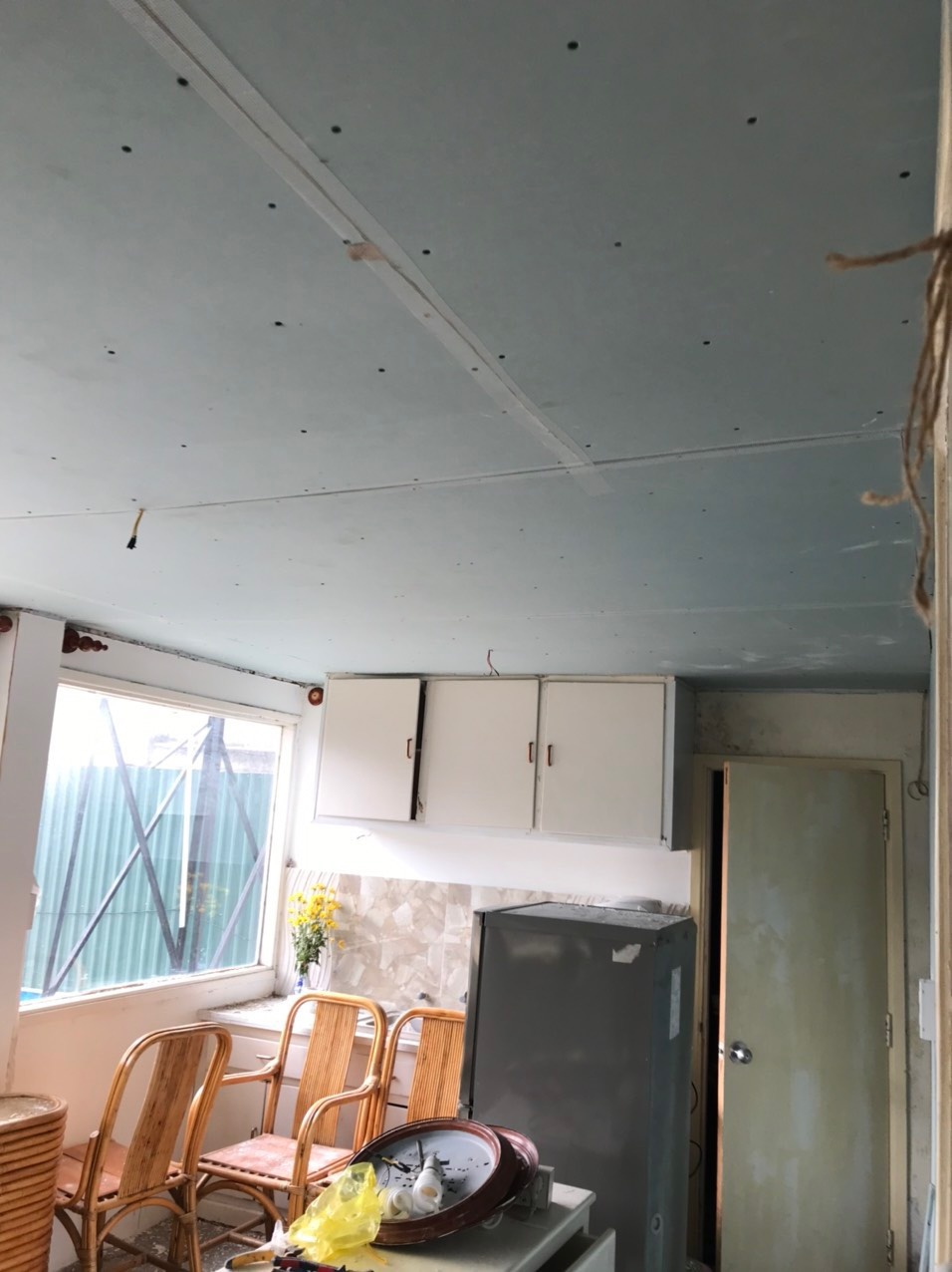 | Toàn bộ nhà vốn là gỗ ván ép nên khá ẩm mốc, ọp ẹp. Khi cải tạo, cả nhà lột hết phần ván ra, lót mút cách âm và phủ thạch cao để tạo cảm giác mới, thông thoáng hơn. Chị Việt Anh tận dụng gỗ thông, xử lý bề mặt và phủ sơn làm nội thất. Chị đặt trên kệ gỗ các loại cây gia vị như rose mary, nhất mạt hương, bạc hà tỏa hương thơm mát. |