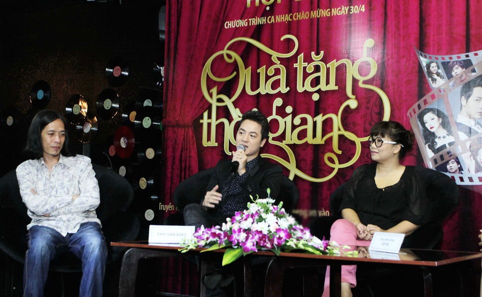 | Đăng Khôi chụp hình cùng ê-kíp sản xuất chương trình gồm nhà thơ Phan Huyền Thư, đạo diễn sân khấu Bông Mai và nhạc sĩ Thanh Phương. Đêm nhạc Quà tặng âm nhạc với sự tham gia của nhiều ca sĩ nổi tiếng như Mỹ Linh, Thanh Lam, Trọng Tấn, Phạm Thu Hà, Ngô Kiến Huy, Trang Pháp... |