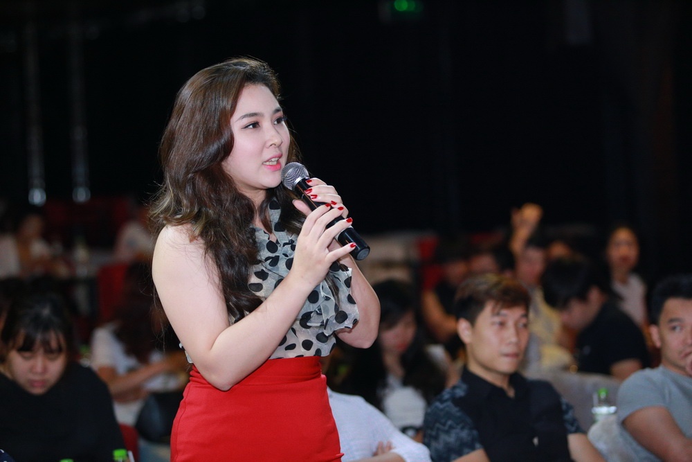 Thủy Anh có mặt từ sớm để chuẩn bị cho buổi họp báo chương trình do nam ca sĩ 32 tuổi sản xuất.