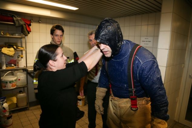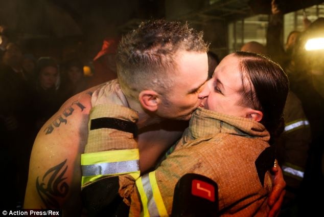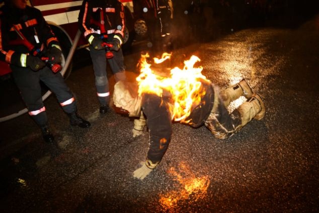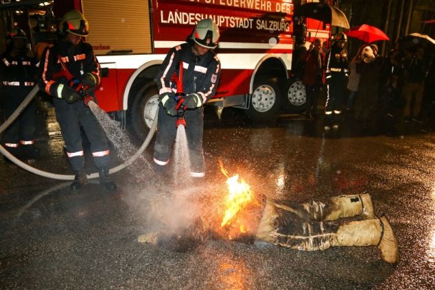 | "Người đuốc" sau khi dập lửa. Ảnh: Franz Neumayr. |