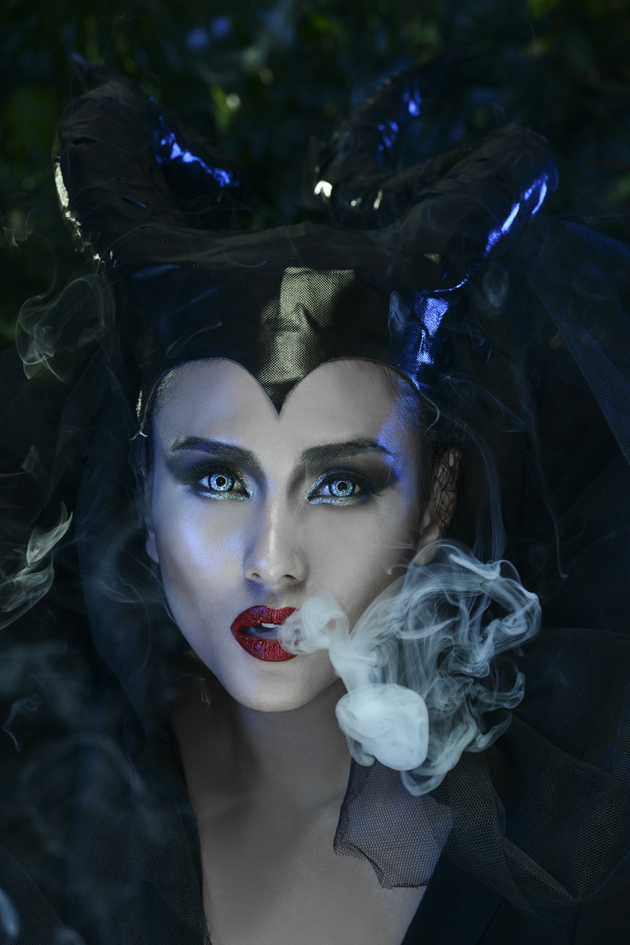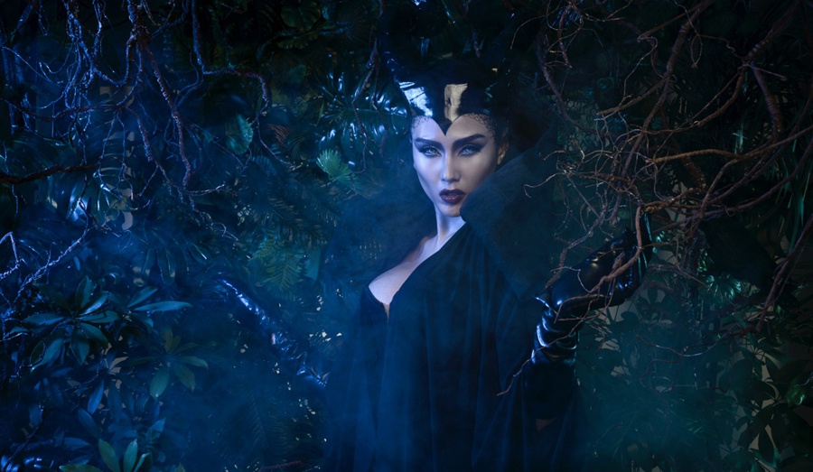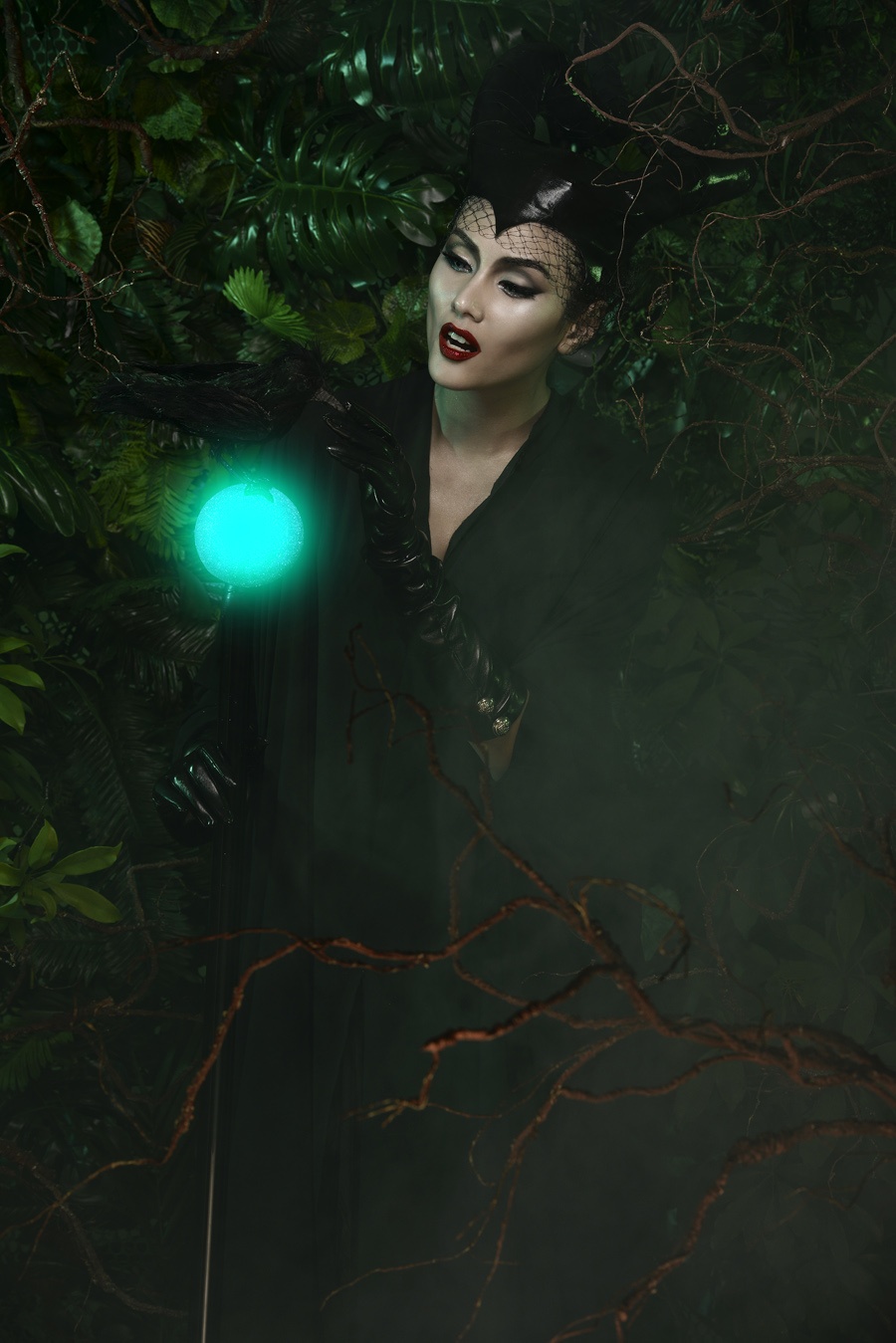 Bộ ảnh được set-up tại studio với bối cảnh nhân tạo, sao chép bối cảnh quay trong rừng của bộ phim Maleficent. Hiệu ứng khói, ánh sáng góp phần làm bức ảnh thêm phần âm u, huyền bí.