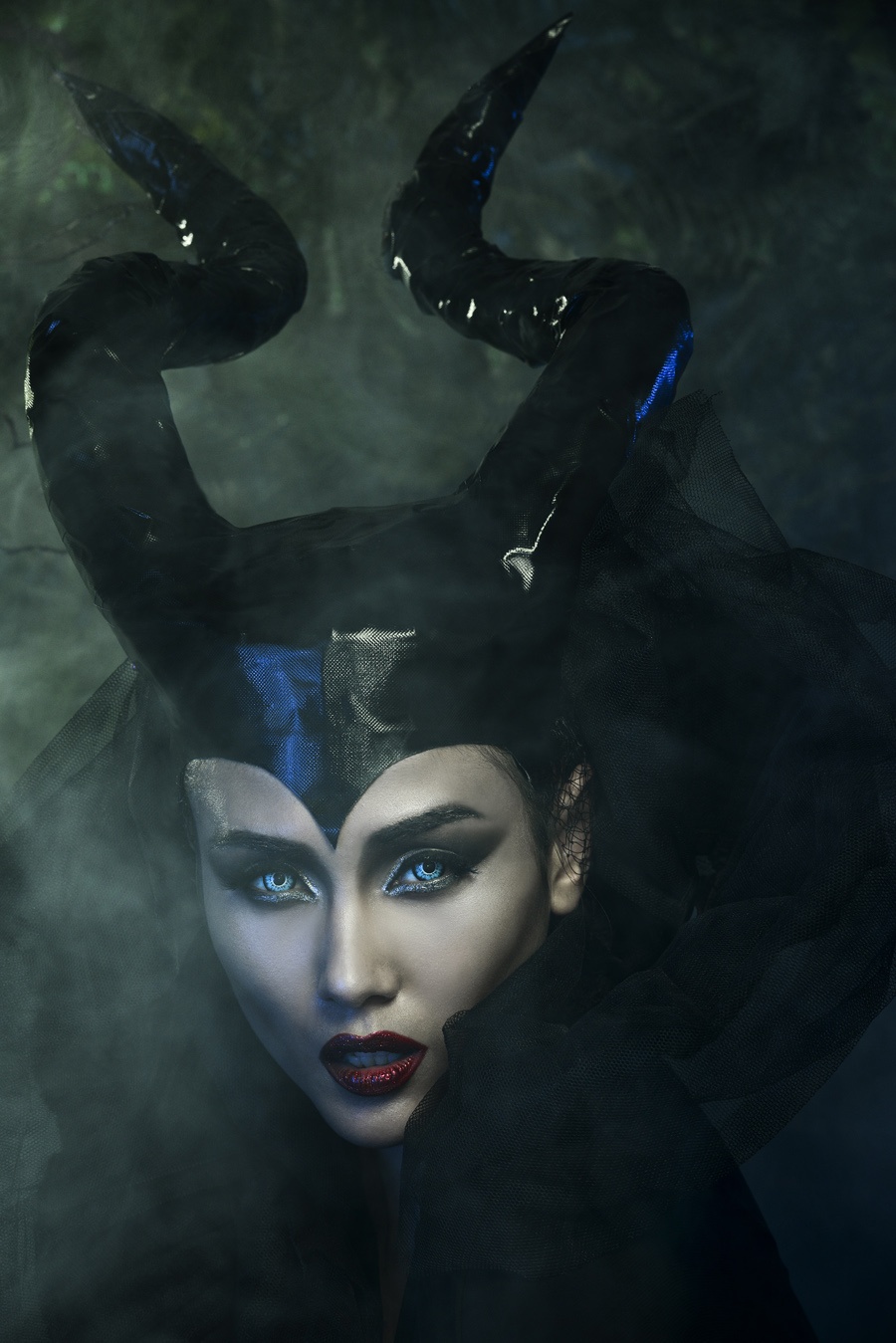 Trong bộ ảnh ấn tượng, chân dài đình đám làng mốt Việt hóa trang giống với tạo hình của nhân vật phản diện Tiên hắc ám trong bộ phim "Maleficent".