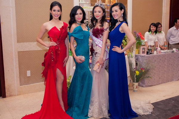 Buổi tiệc còn có sự tham gia của hoa hậu Trúc Diễm, hoa hậu châu Á Victoria Phương Nguyễn, người mẫu Thu Hằng, Lan Hương, Diệu Hân, Á hậu Hoàng Oanh.... Các người đẹp đều chăm chút ngoại hình thật lộng lẫy bằng những chiếc váy dạ hội đẳng cấp và sang trọng.