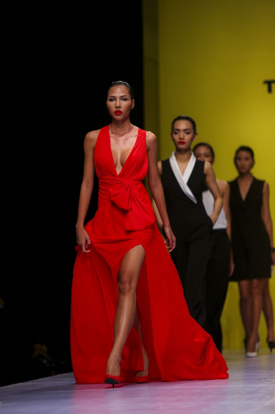 Dù không đảm nhận vai trò vedette, giải vàng Siêu mẫu Việt Nam 2009 vẫn tự tin catwalk giữa thời điểm vướng nhiều tin đồn làm ảnh hưởng tên tuổi.