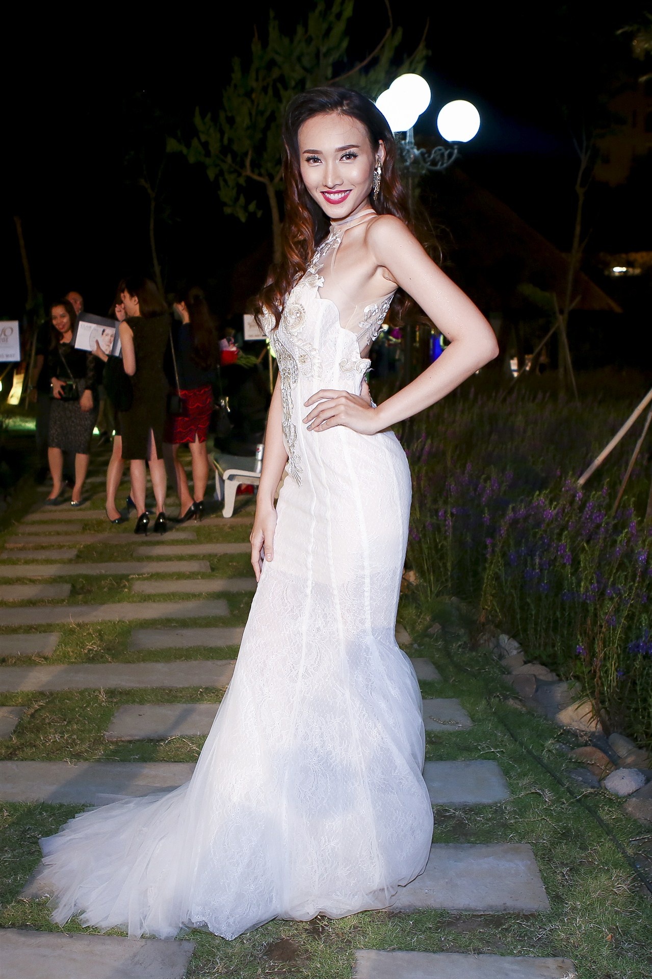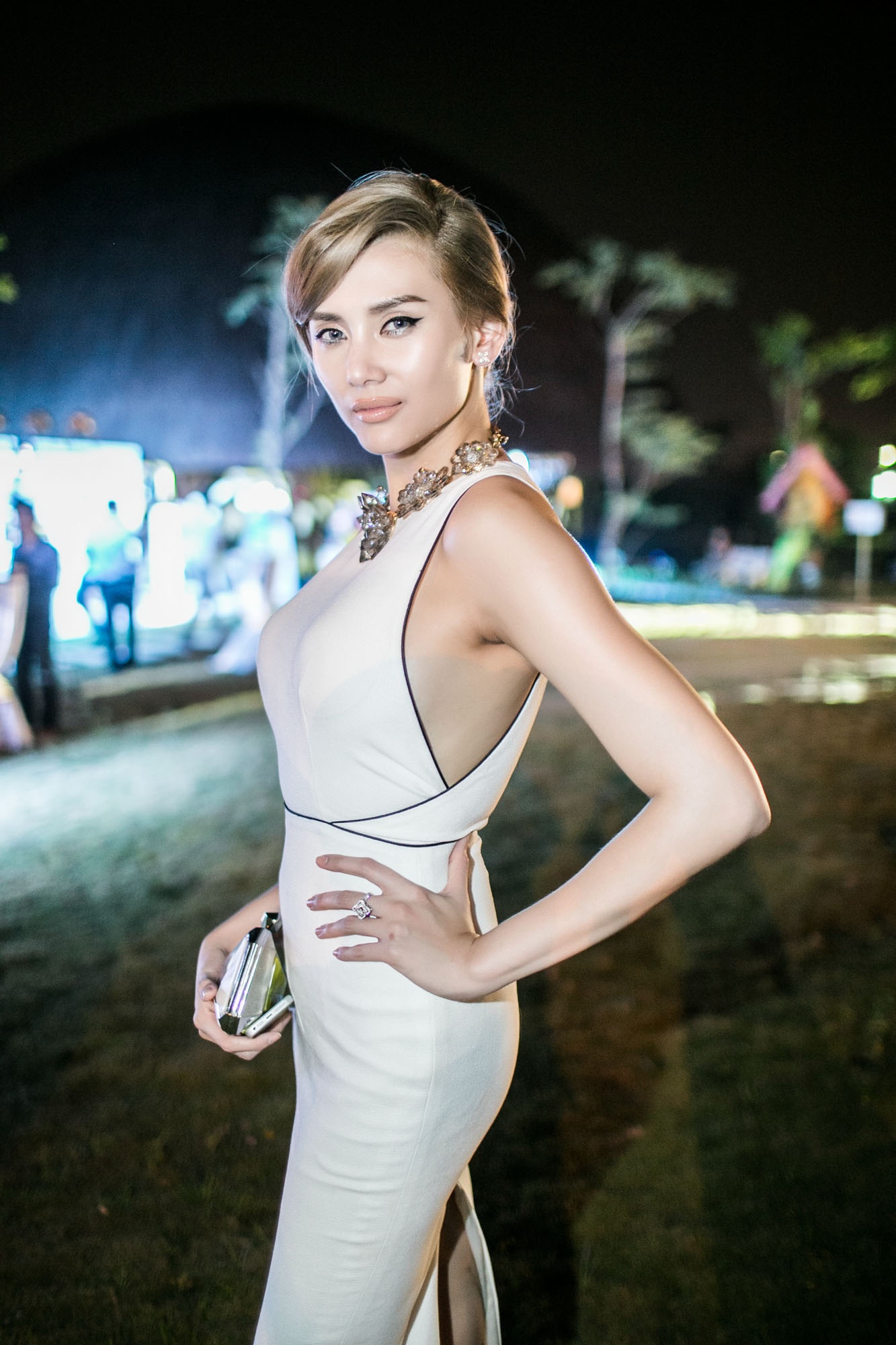 Phong cách thời trang sang trọng giúp giải vàng Siêu mẫu Việt Nam 2008 trở thành điểm nhấn tại buổi tiệc diễn ra ở đảo Kim cương, TP HCM, tối 17/4.