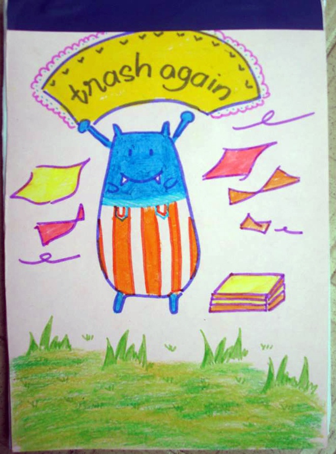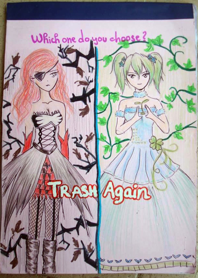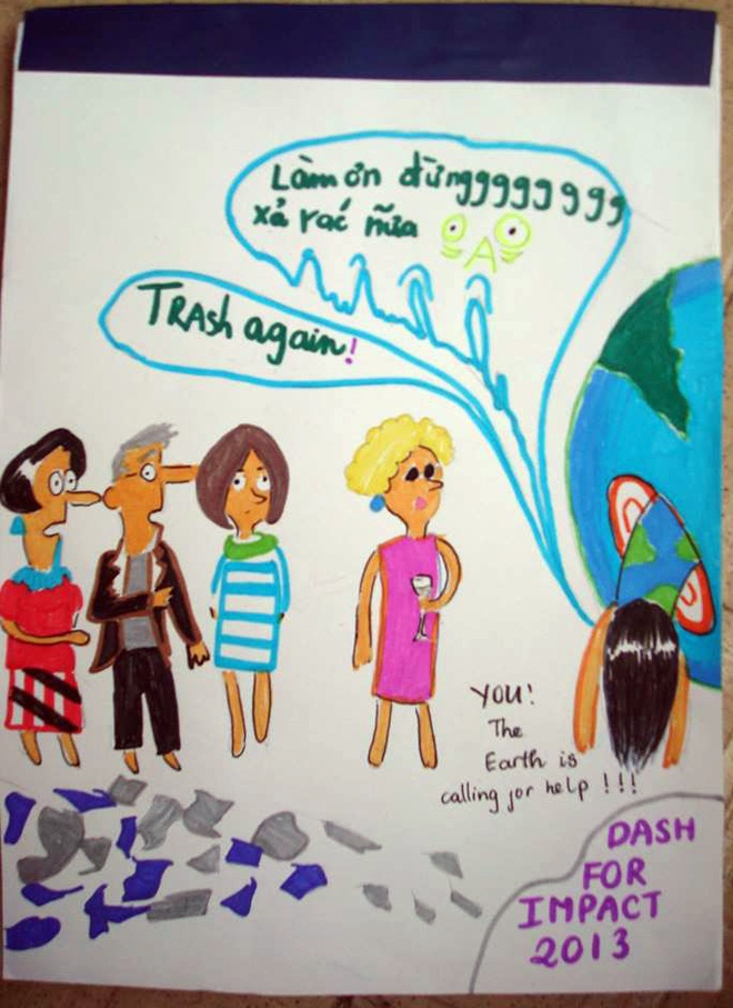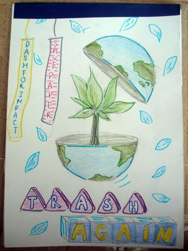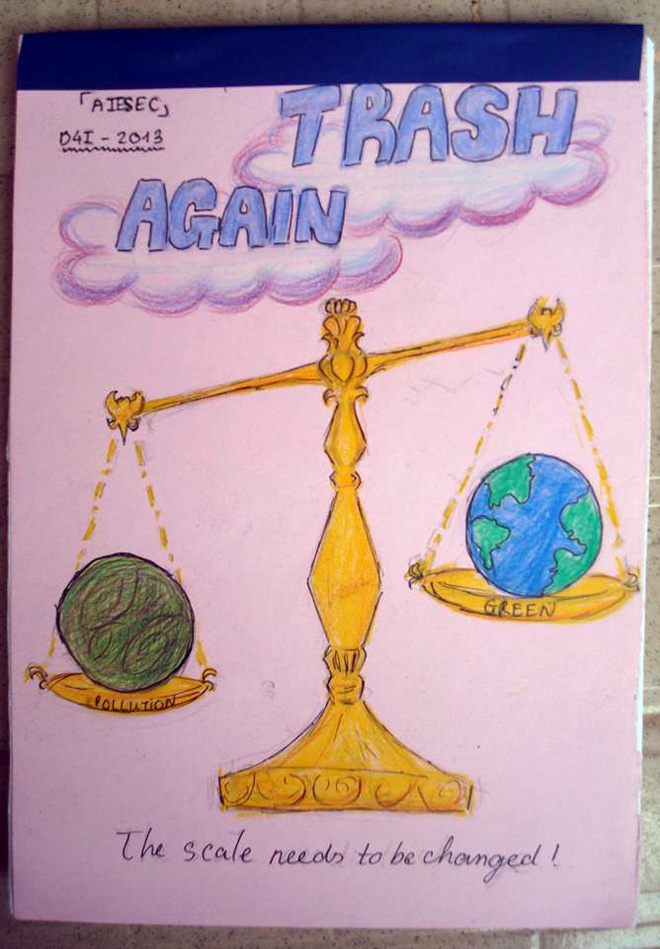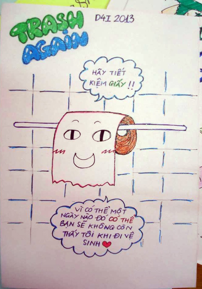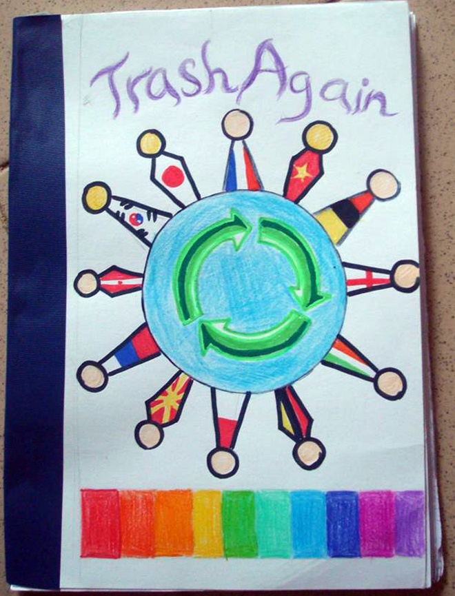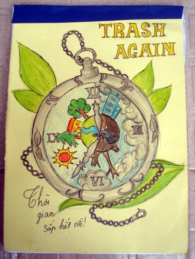 Sáu bạn trẻ này đang là tiến hành dự án mang tên Trash Again, với mục đích nâng cao nhận thức của các bạn học sinh trên địa bàn thành phố Hà Nội về tầm quan trọng của việc tiết kiệm giấy.