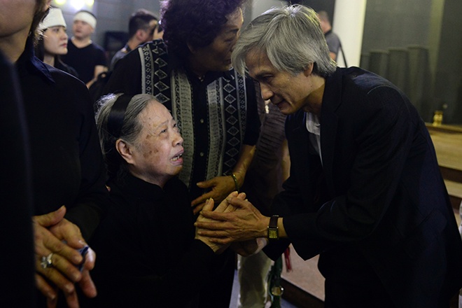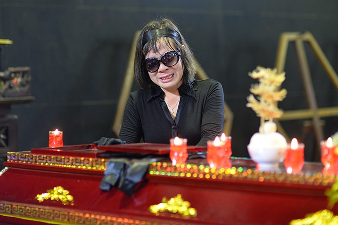 | Kết hôn qua mai mối nhưng tình cảm được vun đắp qua những năm chung sống, bà Ngọc Khanh đau đớn, nghẹn ngào khi nhìn mặt chồng trong linh cữu. |