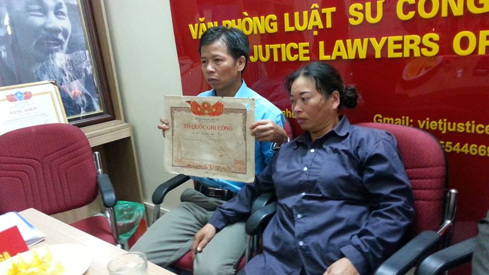 Sáng 19/11, ông Nguyễn Thanh Chấn (ở xã Nghĩa Trung, huyện Việt Yên, tỉnh Bắc Giang) cùng vợ là Nguyễn Thị Chiến lên Hà Nội tìm đến văn phòng luật sư Công Lý Việt để nhờ hỗ trợ pháp lý.