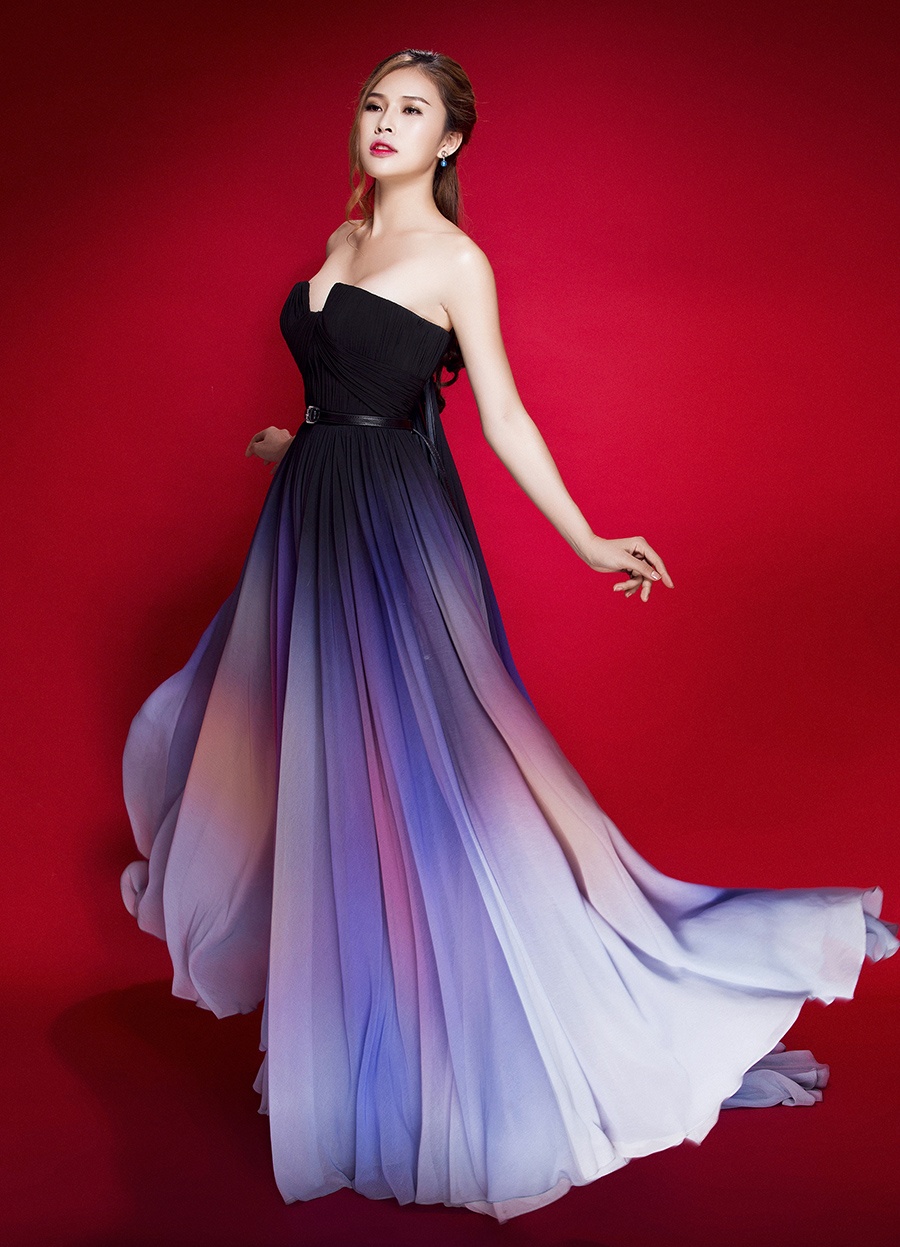 Trong bộ ảnh vừa thực hiện, người mẫu Kim Yến - vợ tương lai của nam diễn viên Thiên Bảo mạnh dạn khoe đường cong trong những bộ cánh dạ hội voan mỏng, cut-out, xẻ tà táo bạo.