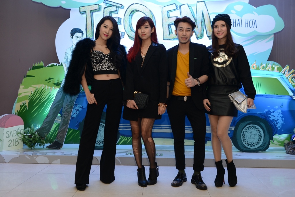 | Tiến Đạt và bạn gái Hari Won cũng có mặt trong sự kiện này. Sau Cuộc đua kỳ thú, cặp đôi rất đắt show đi dự sự kiện.