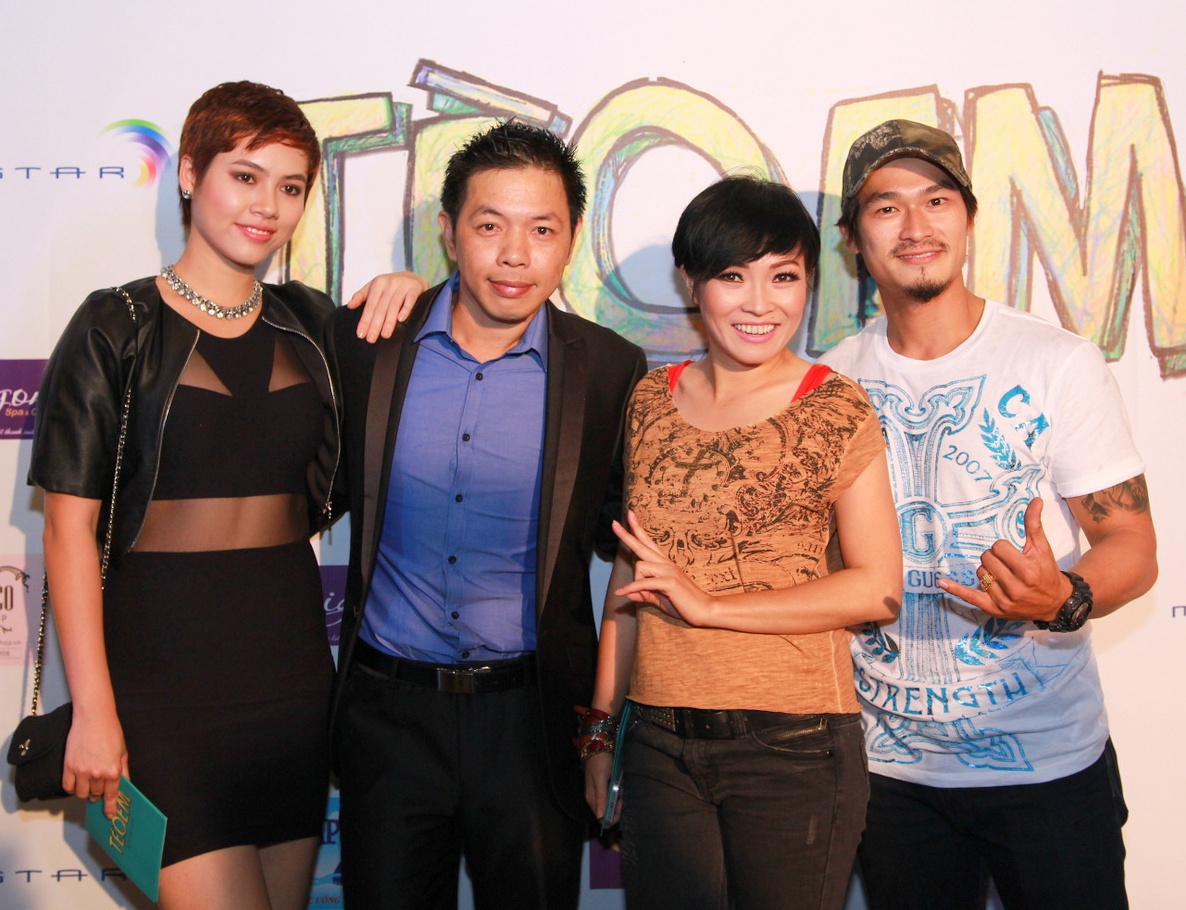 | Đả nữ Ngô Thanh Vân cũng có mặt để chúc mừng Thái Hòa và ê-kíp làm phim thân thiết của mình. |