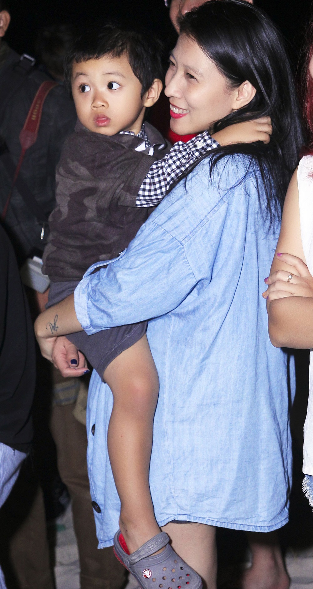 | Con trai 2 tuổi của quán quân Sao Mai điểm hẹn 2006 cũng thức khuya để xem ba biểu diễn. Cậu bé rất ngoan, kháu khỉnh, thừa hưởng nét đẹp từ ba lẫn mẹ. |