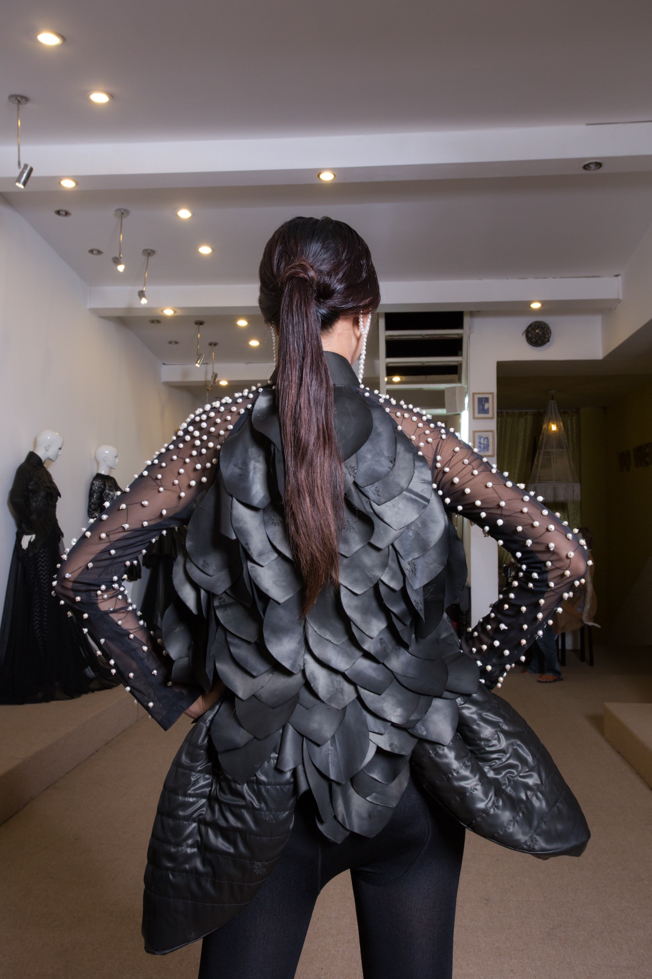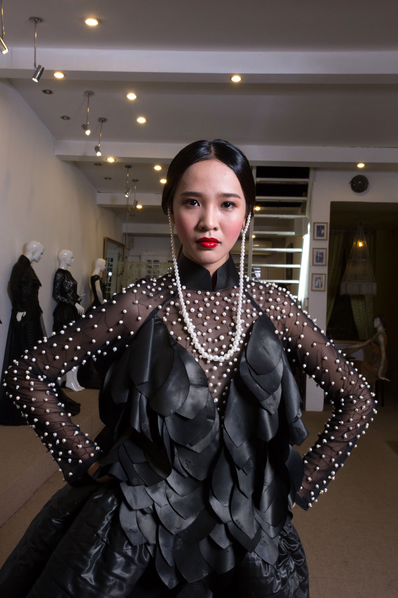 ... tạo nên cái nhìn mới cho trang phục truyền thống. Tông màu đen làm chủ đạo thể hiện sự huyền bí.