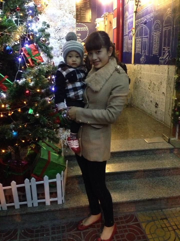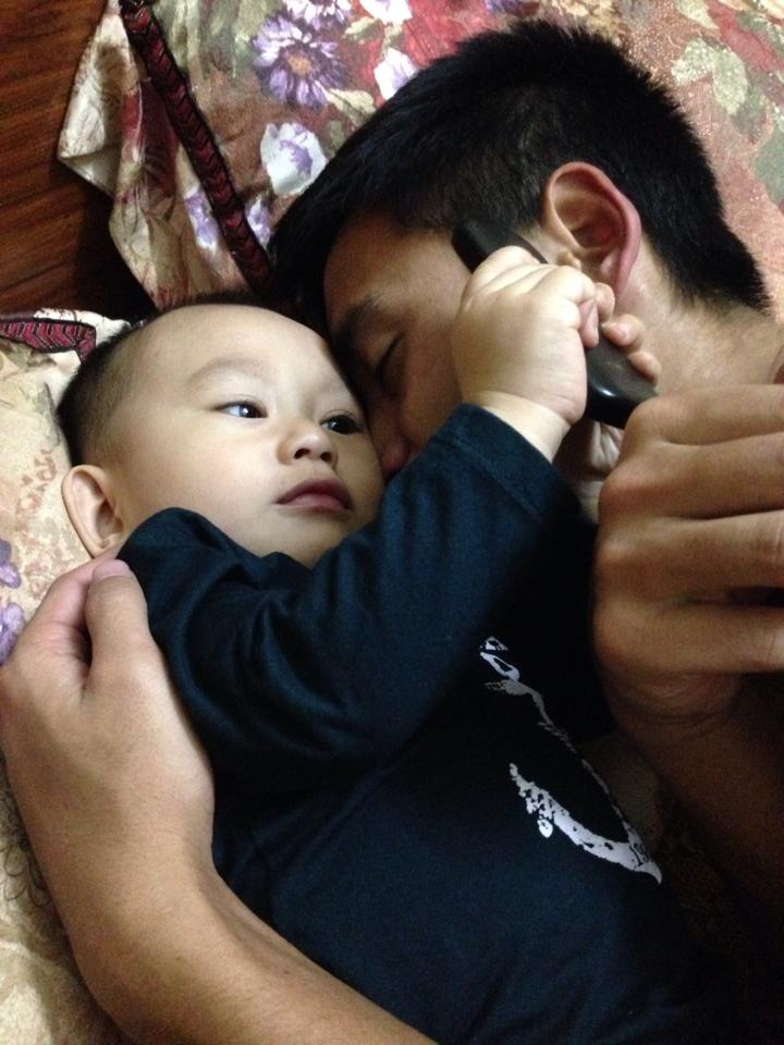 Hình ảnh ấm áp tình mẫu tử của bố con Vũ Minh Tuấn.