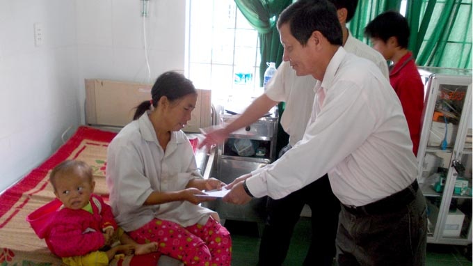 | Cơ quan chức năng thăm và động viên mẹ con bà Pằng, hai trong số bốn nạn nhân may mắn thoát chết đến thời điểm này. Ảnh: TR.T. |