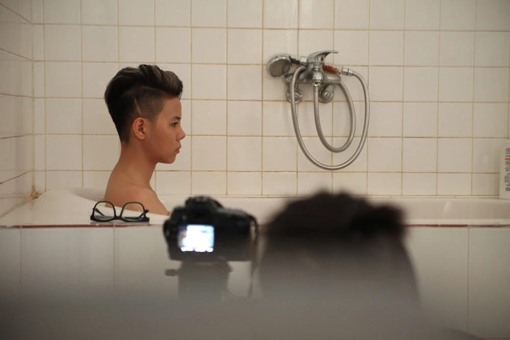 | Học trò của Hồng Nhung tại The Voice thực hiện cảnh bán nude trong MV Anh và Anh. |