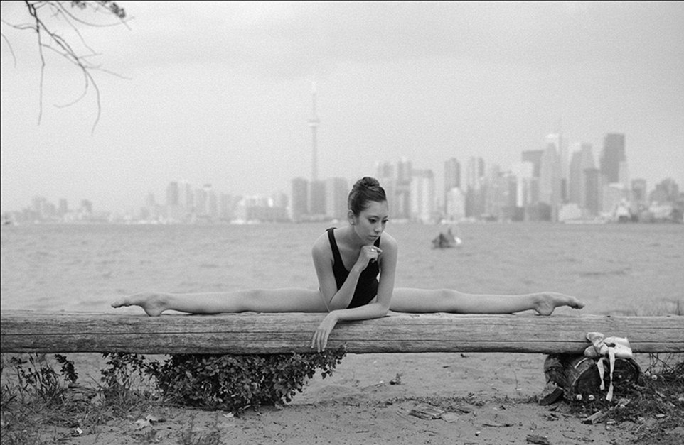 | Người vũ công trầm ngâm đuổi theo những suy tư để mặc sau lưng thành phố Toronto đang lặng im ngắm nhìn. |