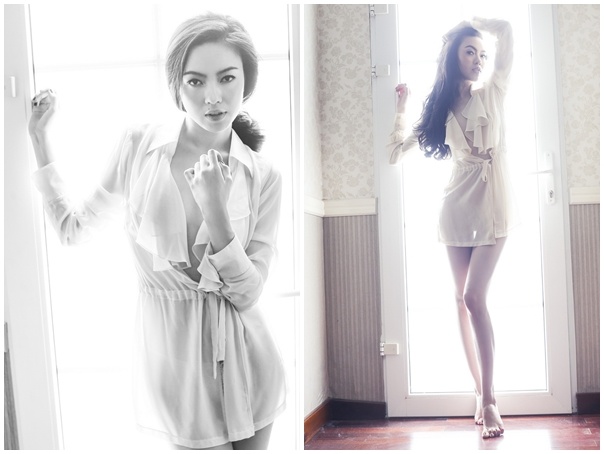 | Sau nhiều sự cố không đáng có, Vũ Hoàng Điệp hướng đến hình tượng sexy, nóng bỏng. Cô cùng ê-kíp của mình thực hiện những bộ ảnh thời trang táo bạo. Trong bộ ảnh mới, người mẫu chỉ diện áo sơ-mi mỏng manh, để lộ đường cong gợi cảm và phô diễn vòng 1 không nội y. |
