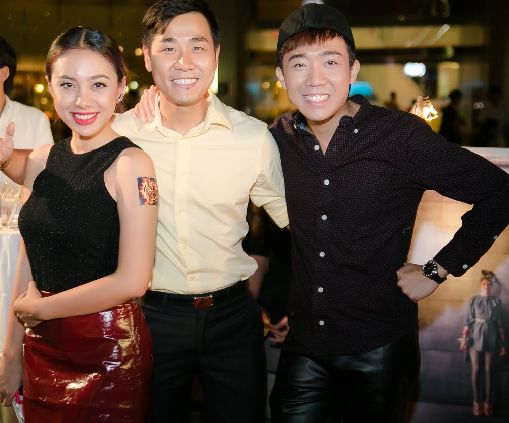 | Dù bận rộn chạy show, ghi hình cho các chương trình truyền hình nhưng Trấn Thành vẫn tranh thủ đi xem phim. Anh đi cùng MC Nguyên Khang và ca sĩ Lan Trinh. |