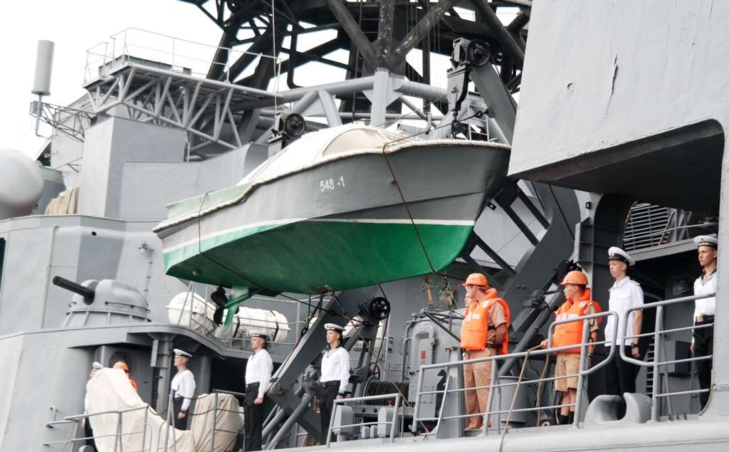 | Lễ đón diễn ra lúc 11h cùng ngày, với sự tham dự của đại diện Bộ Quốc phòng Việt Nam, Tư lệnh Vùng 3 Hải quân và các cơ quan chính quyền Đà Nẵng. Đại tá A.V Potapov, cho biết, chuyến thăm nhằm tăng cường mối quan hệ, giao lưu giữa Hải quân hai nước. |